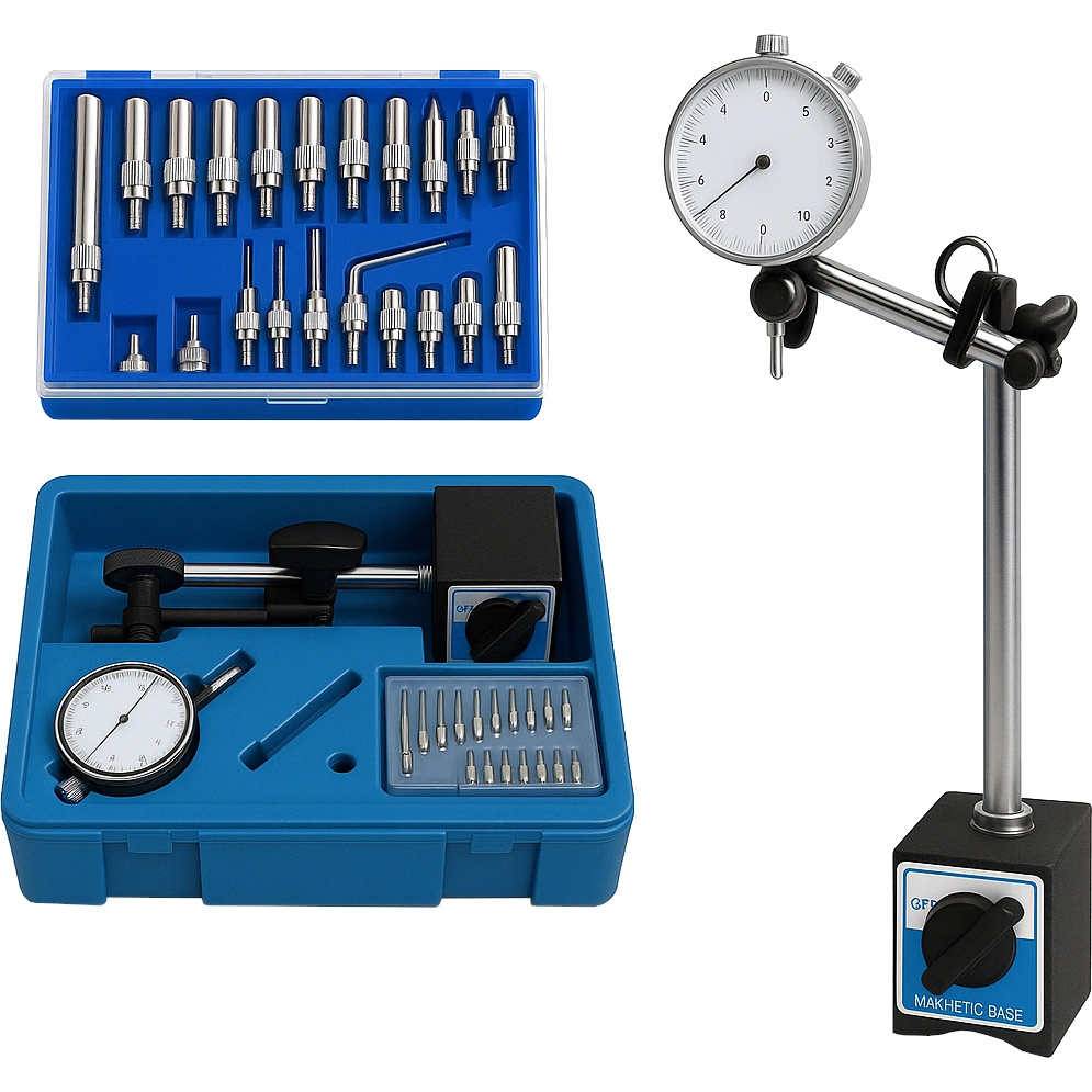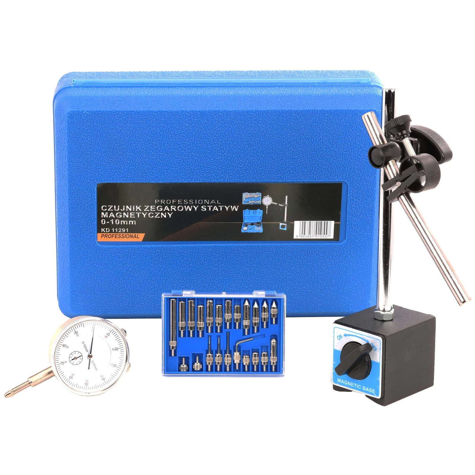 Czujnik zegarowy + statyw magnetyczny 0-10mm + 22 końcówki