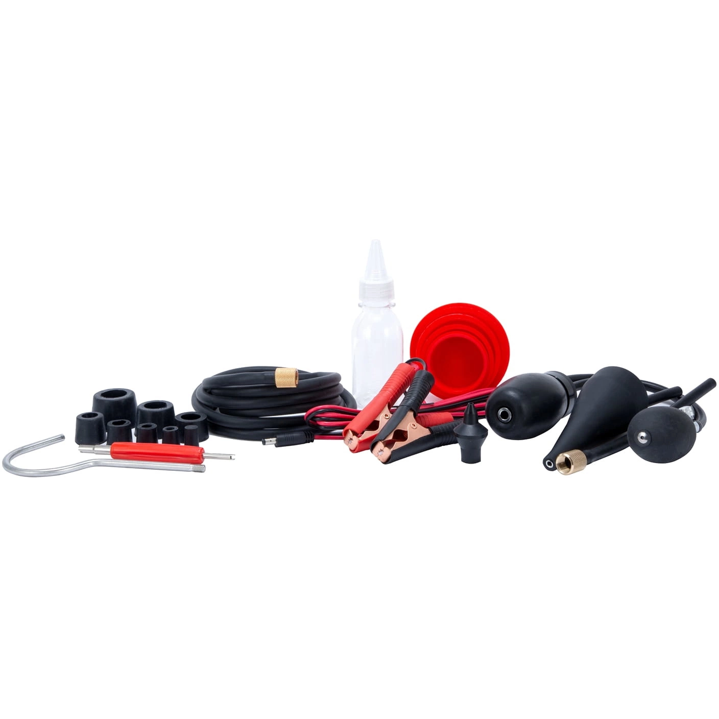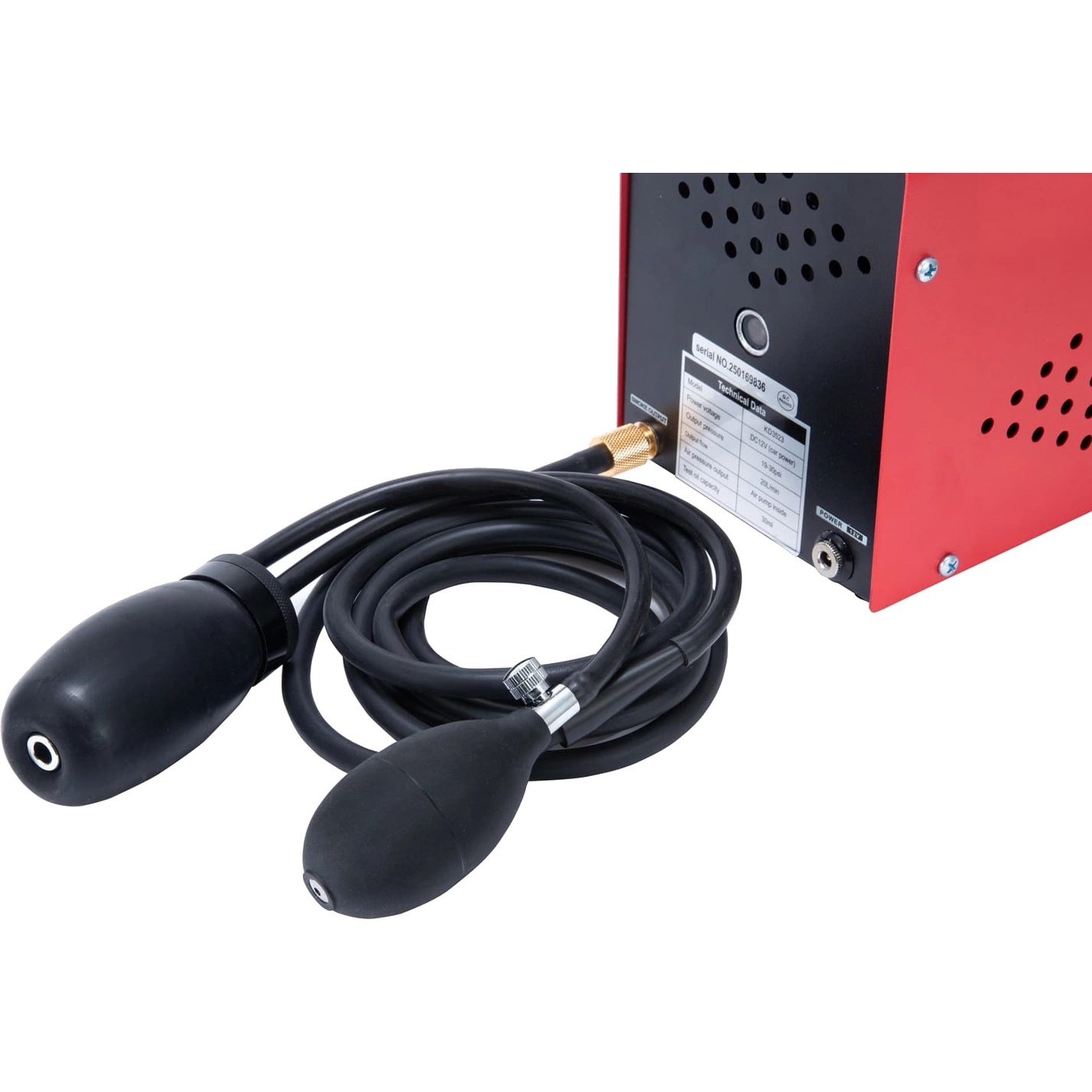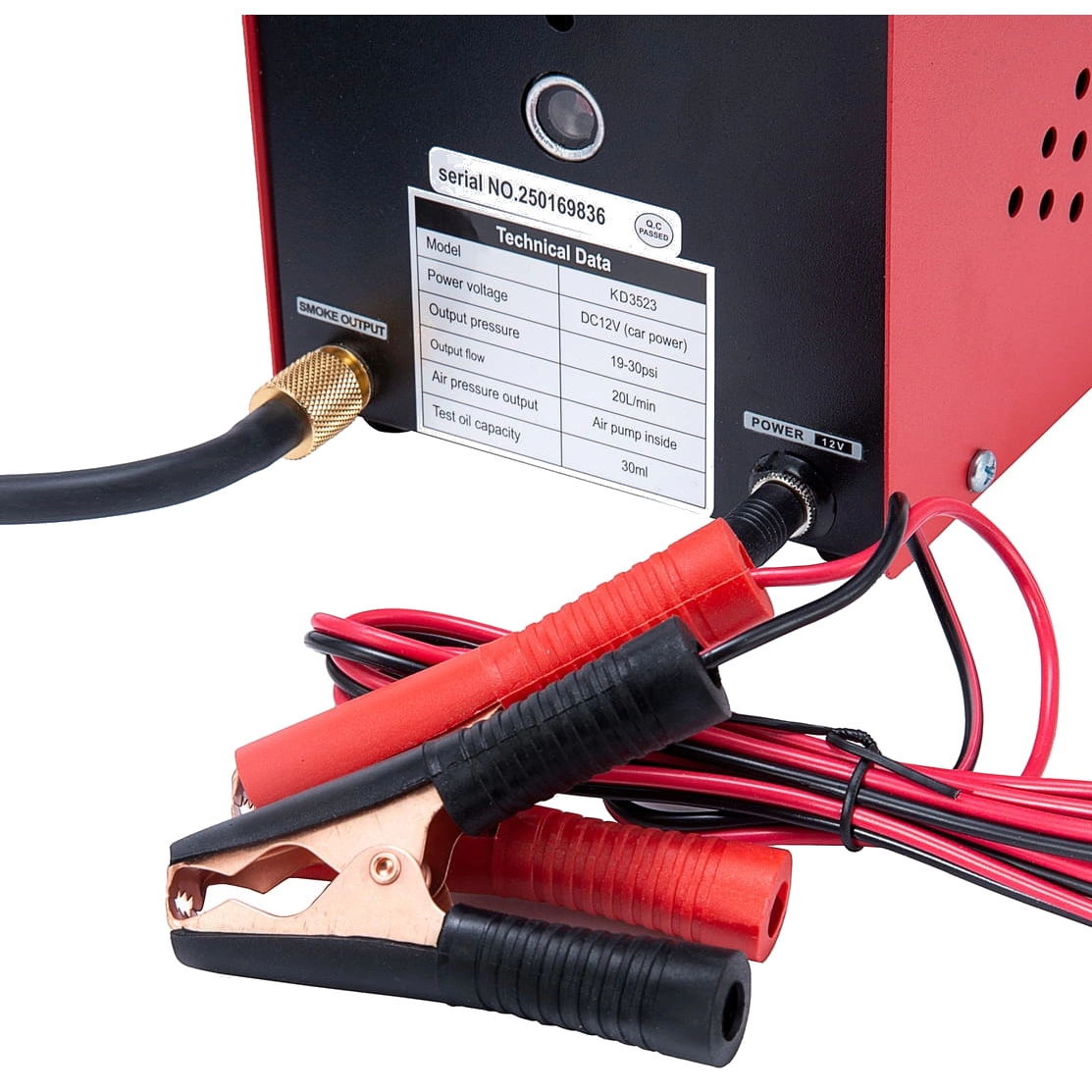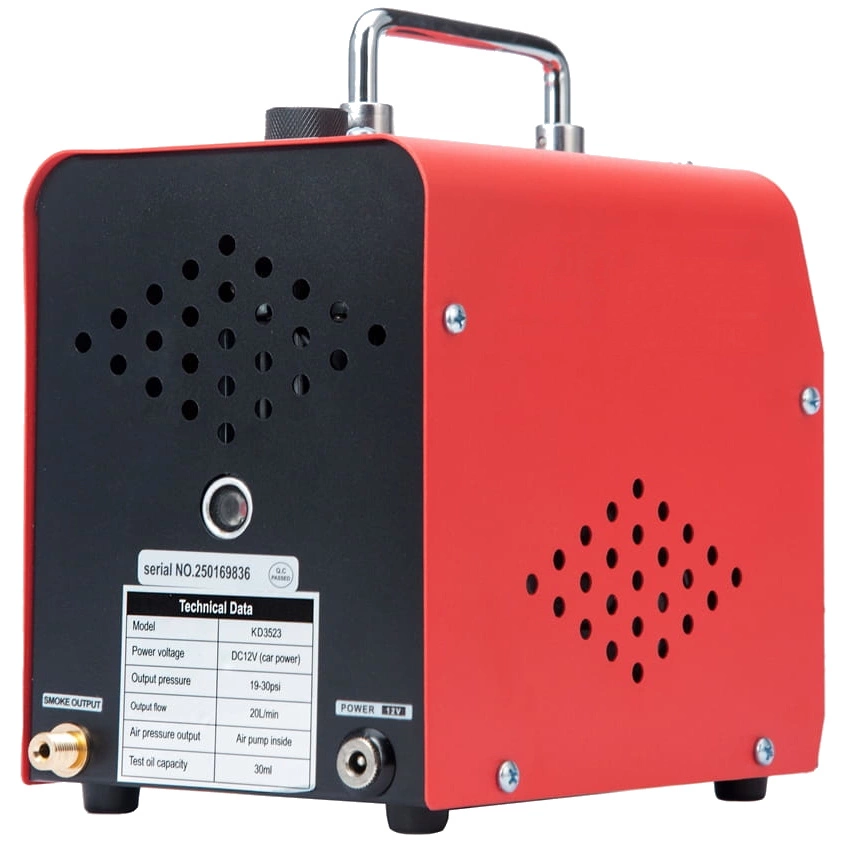 Generator dymu do sprawdzania szczelności układów 12V 20 L/min 30 ml to profesjonalne urządzenie diagnostyczne służące do wykrywania nieszczelności w systemach rurowych pojazdów oraz instalacjach technicznych. Umożliwia szybkie, bezpieczne i precyzyjne lokalizowanie wycieków w układach EVAP, dolotowych, wydechowych, paliwowych, chłodzenia i przewodach podciśnienia. Wbudowana pompa powietrza i manometr zapewniają pełną kontrolę pracy urządzenia bez konieczności podłączania zewnętrznego źródła ciśnienia.