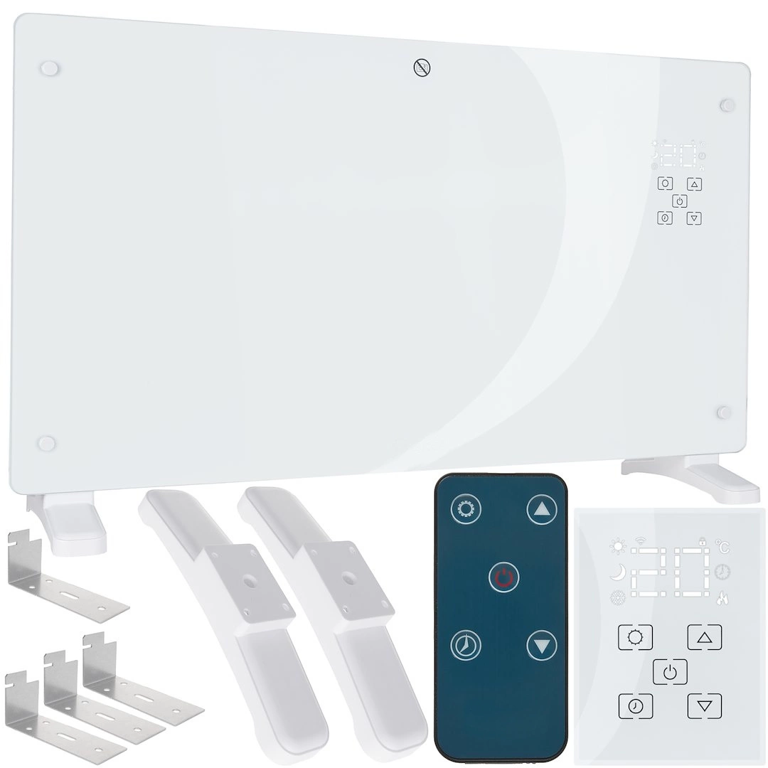 Grzejnik elektryczny konwektorowy szklany biały LCD z pilotem sterowania i WiFi 2500W