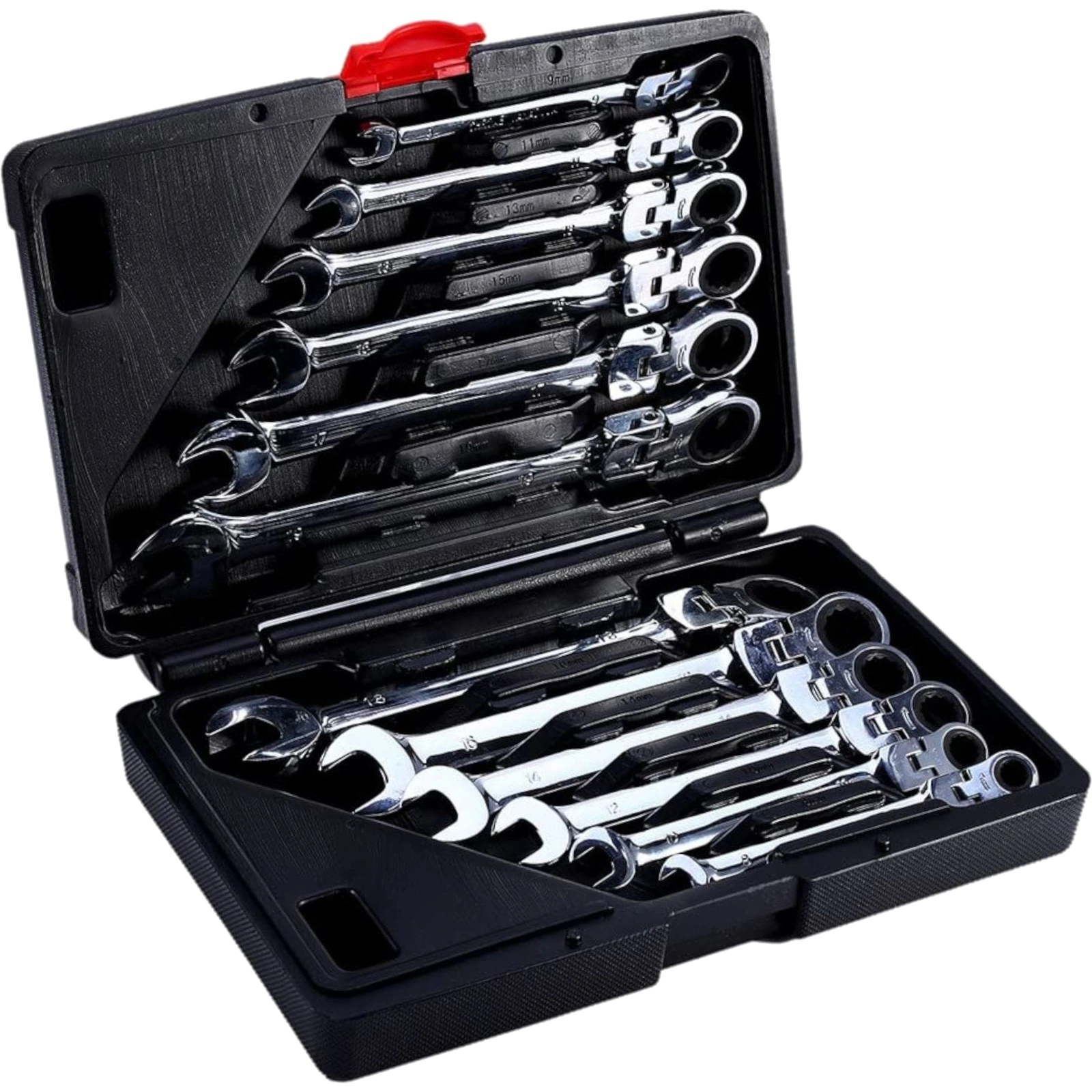 • Klucze płasko-oczkowe z grzechotką: 8 mm – 19 mm