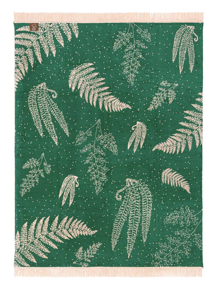 Koc bawełniano-akrylowy botaniczny z frędzlami dwustronny Cotton Cloud 150x200cm - Beżowy/Zielony