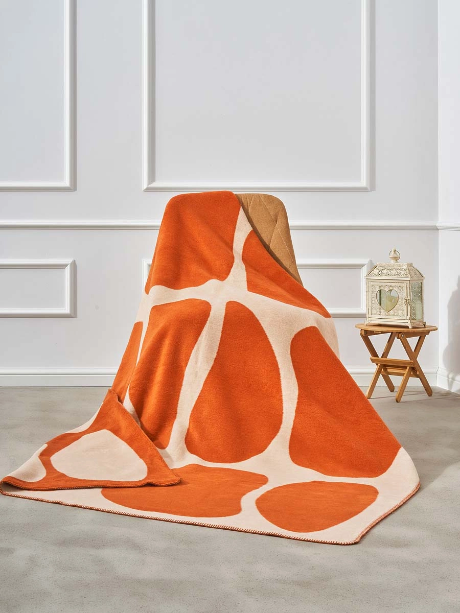 Koc bawełniano-akrylowy kamyczki dwustronny Cotton Cloud 150x200cm - Pomarańczowy/Beżowy