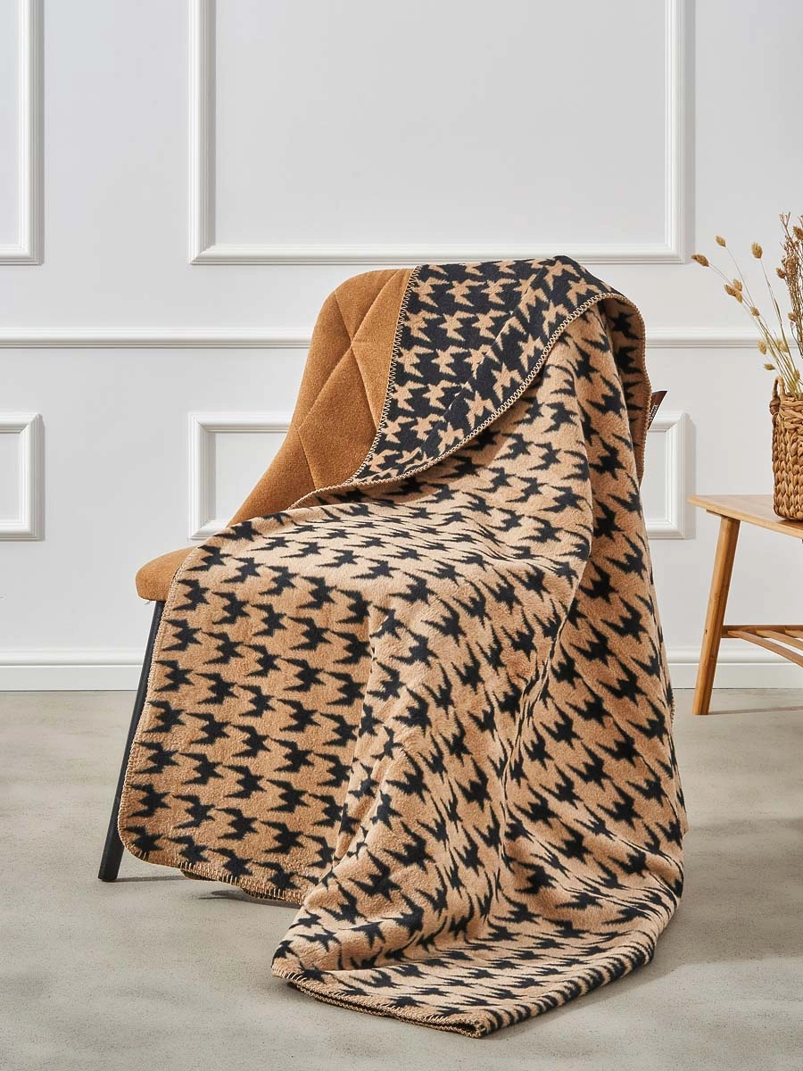 Koc bawełniano-akrylowy pepitka dwustronny Cotton Cloud 150x200cm - Czarny/Brązowy