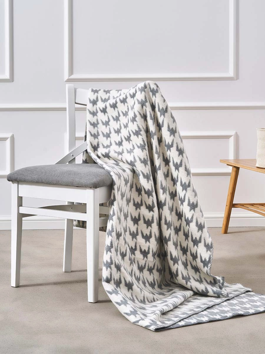 Koc bawełniano-akrylowy pepitka dwustronny Cotton Cloud 150x200cm - Szary/Biały