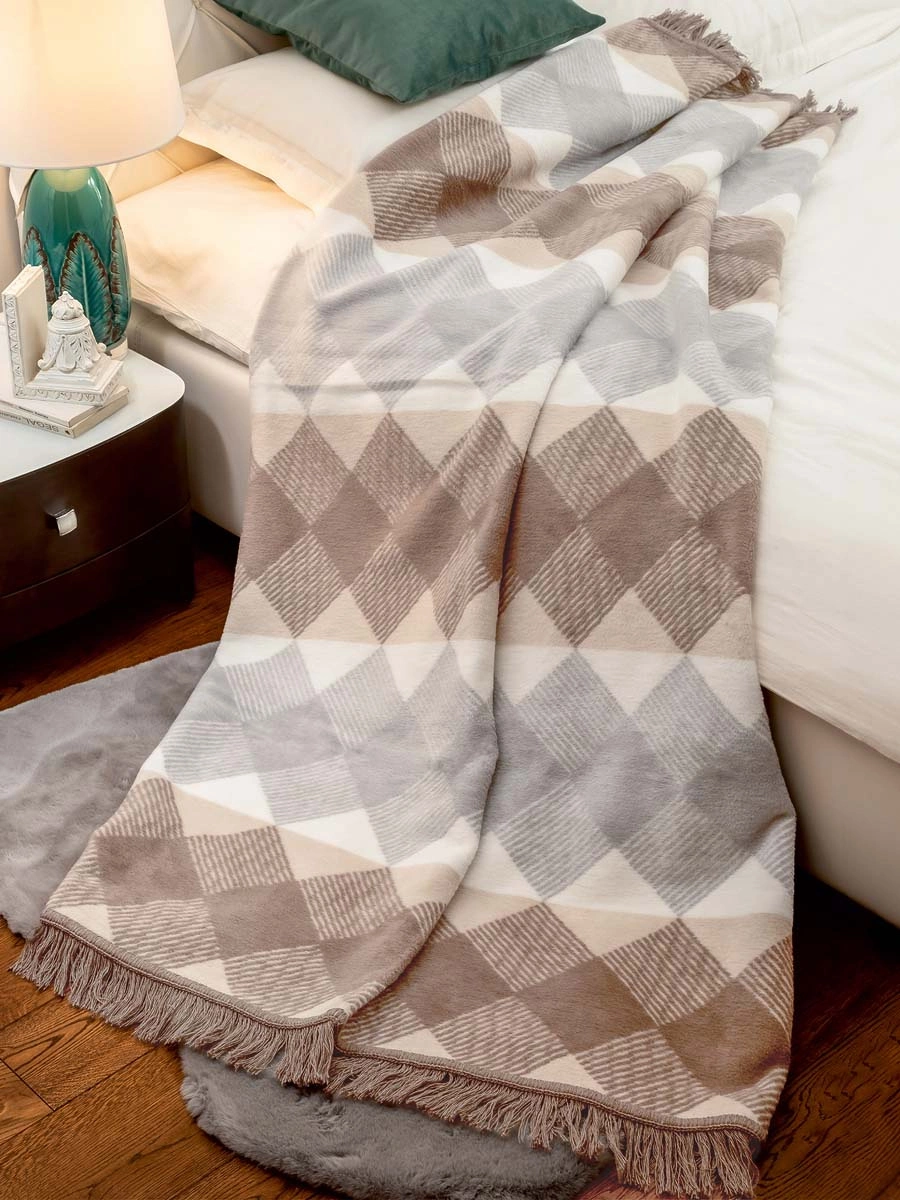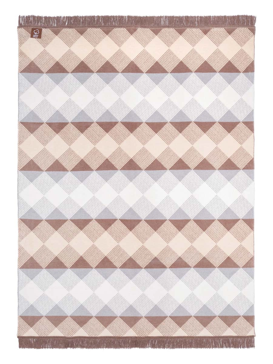Koc bawełniano-akrylowy romby z frędzlami dwustronny Cotton Cloud 150x200cm - Szary/Brązowy