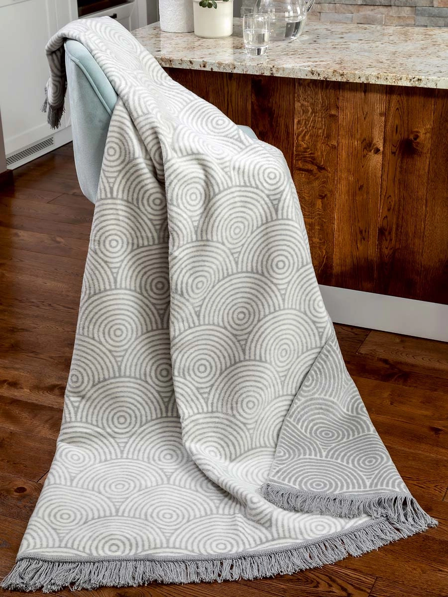 Koc bawełniano-akrylowy rybia łuska z frędzlami dwustronny Cotton Cloud 150x200cm - Szary