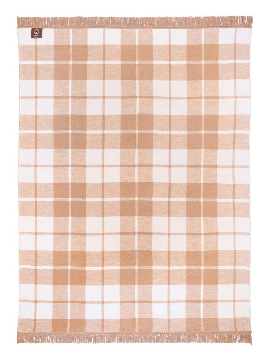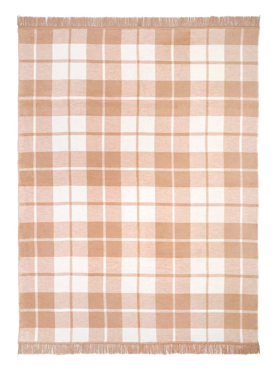 Koc bawełniano-akrylowy w kratę z frędzlami dwustronny Cotton Cloud 150x200cm - Beżowy