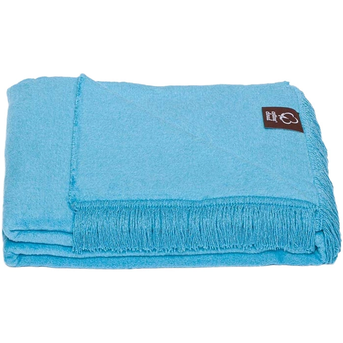 Koc bawełniano-akrylowy z frędzlami Basic Cotton Cloud 150x200cm 430 g/m2 - Błękitny