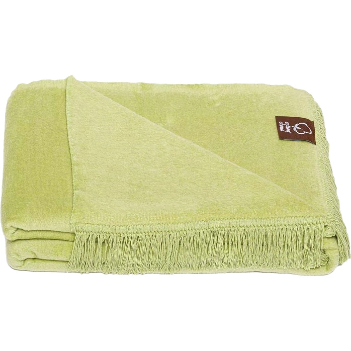 Koc bawełniano-akrylowy z frędzlami Basic Cotton Cloud 150x200cm 430 g/m2 - Jasnozielony