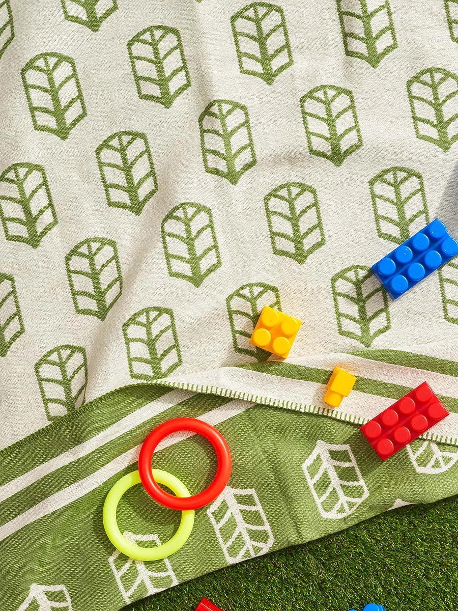 Koc pled bawełniano-akrylowy klaser dwustronny Cotton Cloud 165x200cm 500 g/m2 - Zielony/Biały