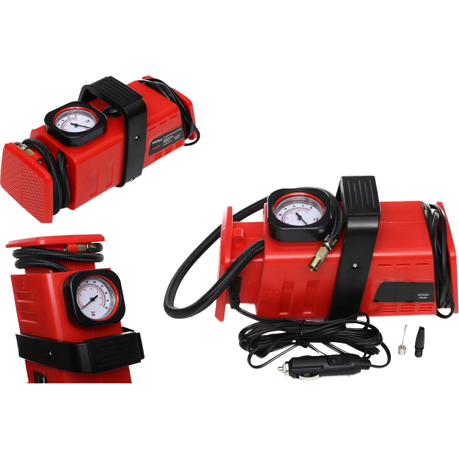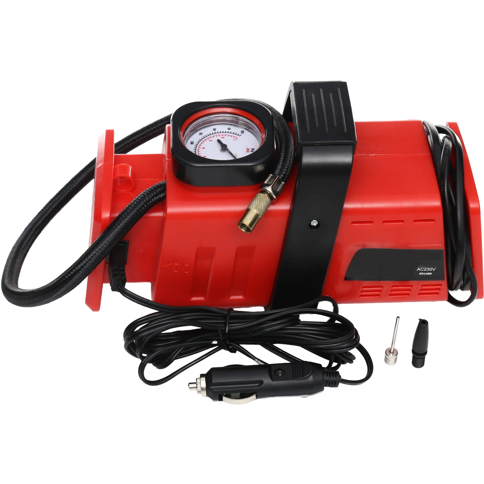 Kompresor samochodowy KD1489 12V / 230V to praktyczne i mobilne urządzenie przeznaczone do pompowania opon, piłek, materacy i innych przedmiotów wymagających sprężonego powietrza. Działa zarówno z gniazda samochodowego 12V, jak i z sieci 230V, co czyni go niezastąpionym zarówno w podróży, jak i w domu.