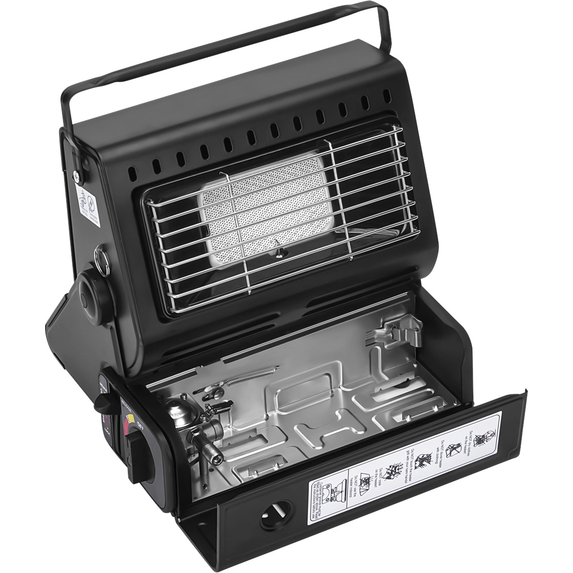 Kuchenka turystyczna / piecyk gazowy 2w1 KD11743 to praktyczne i kompaktowe urządzenie, które łączy w sobie funkcje piecyka grzewczego i kuchenki gazowej. Idealna do użytku na biwaku, w podróży, podczas kempingu, w ogrodzie lub w warsztacie. Dzięki mocy 1,8 kW i zapalnikowi piezoelektrycznemu zapewnia szybkie, bezpieczne i wydajne działanie w każdych warunkach.