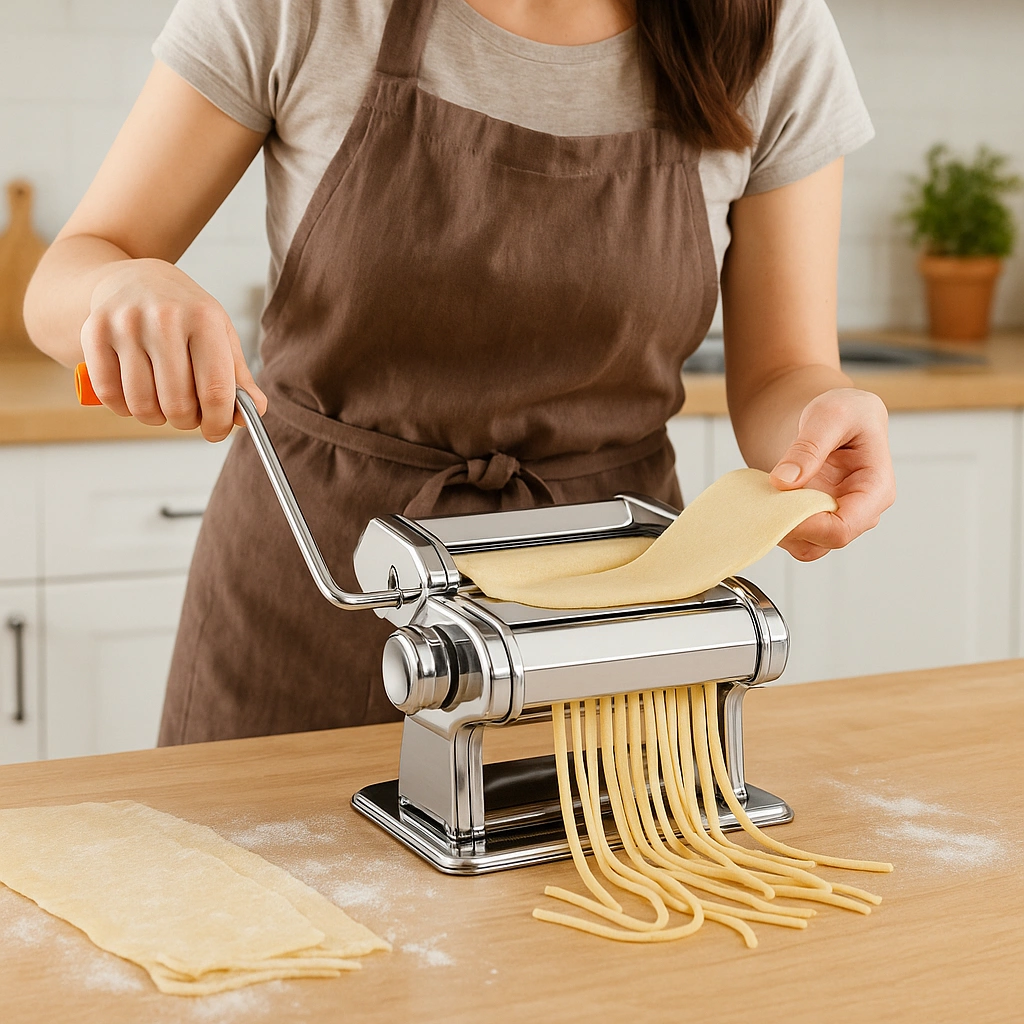 • 3 funkcje w 1 urządzeniu – wałkowanie, cięcie i wykrawanie makaronu