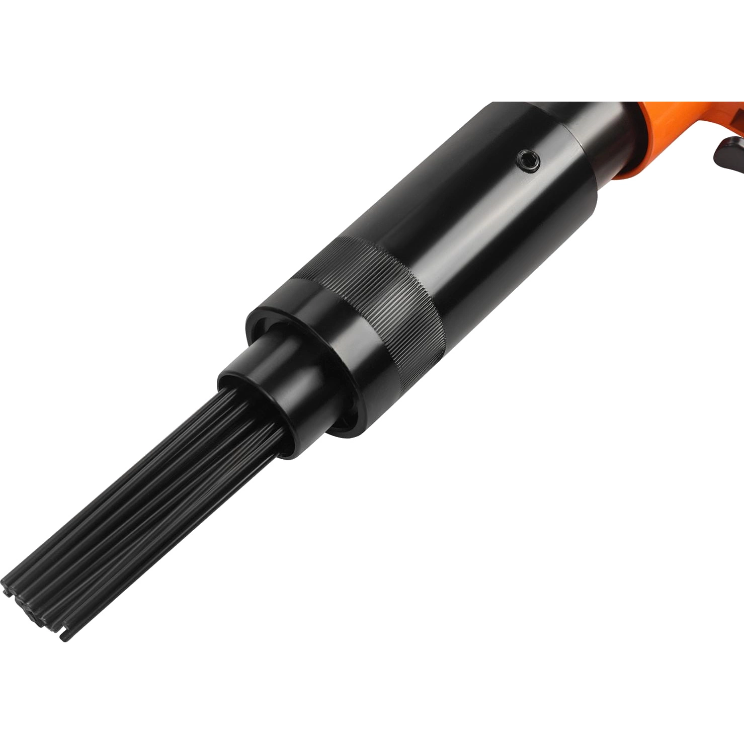 Młotek pneumatyczny igłowy KD3510 to profesjonalne narzędzie czyszczące przeznaczone do usuwania rdzy, farby, żużlu spawalniczego oraz osadów przemysłowych. Dzięki 19 stalowym igłom skutecznie dopasowuje się do chropowatych i trudno dostępnych powierzchni, gwarantując szybkie i precyzyjne czyszczenie.