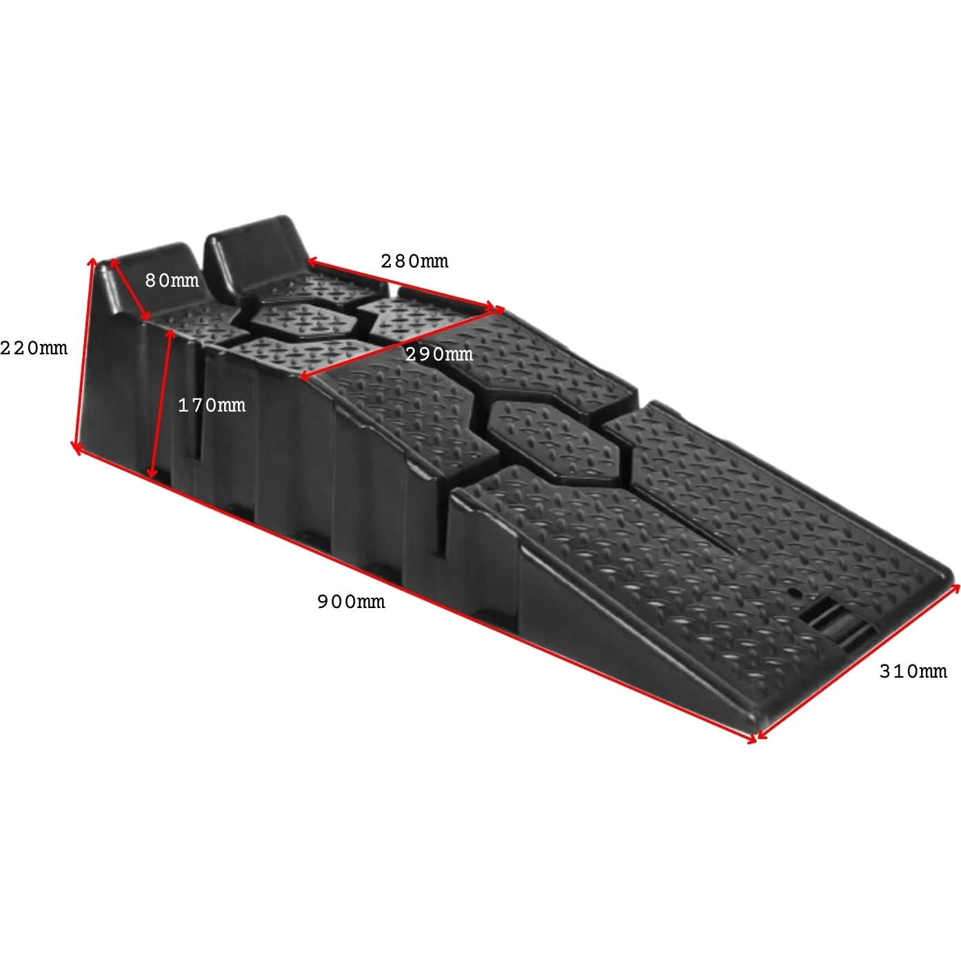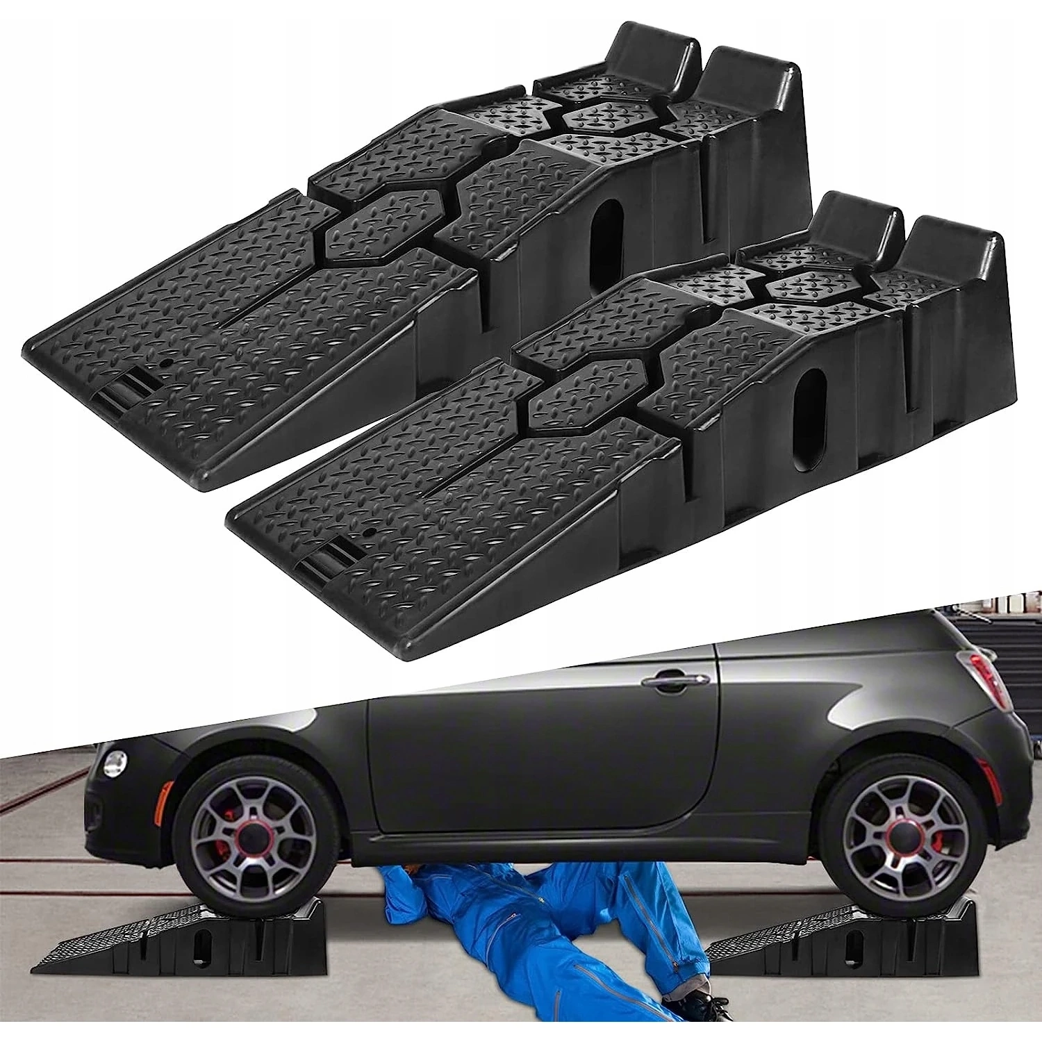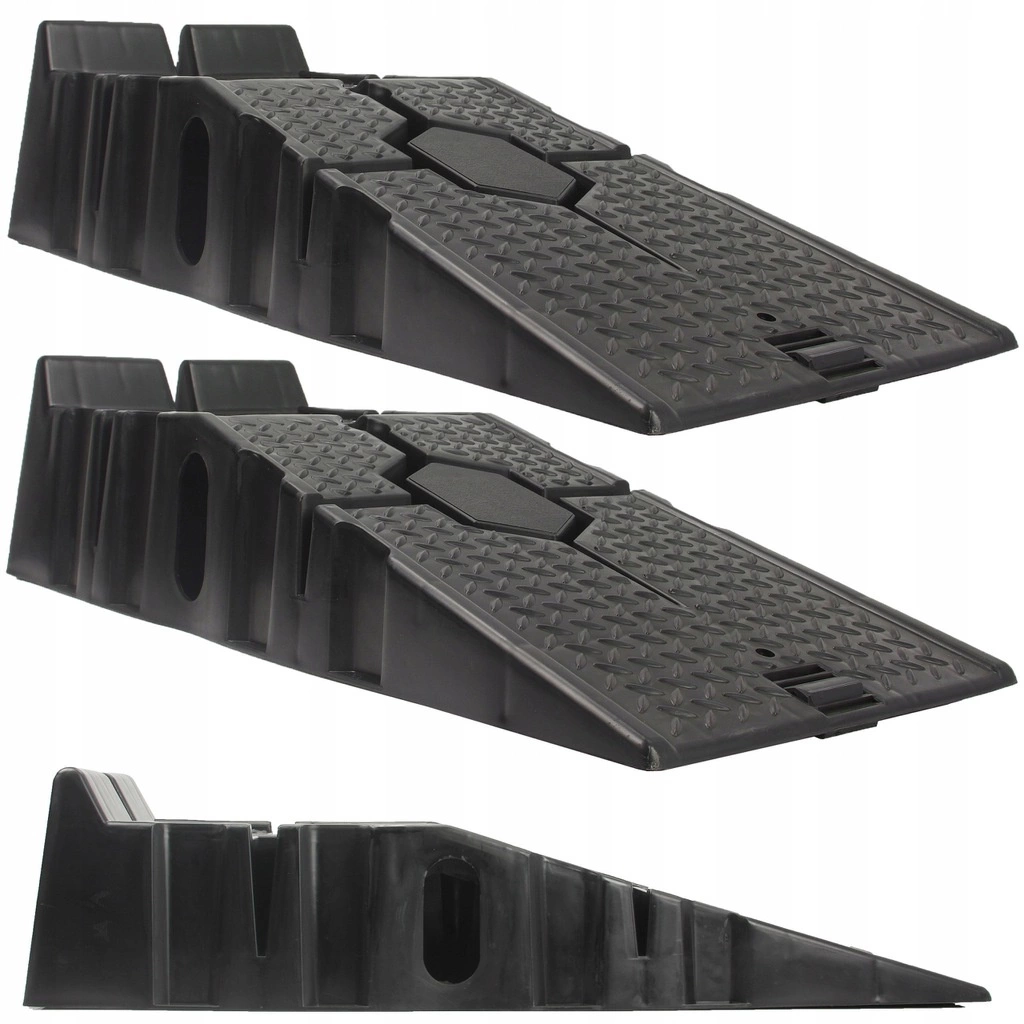 Rampy najazdowe plastikowe 3T (komplet 2 szt.) to praktyczne i uniwersalne rozwiązanie do podjazdu samochodów osobowych w warunkach domowych i warsztatowych. Wykonane z wytrzymałego tworzywa sztucznego, zapewniają stabilność i bezpieczeństwo przy podjeżdżaniu na rampę w celu wykonania przeglądu, wymiany oleju lub drobnych napraw.