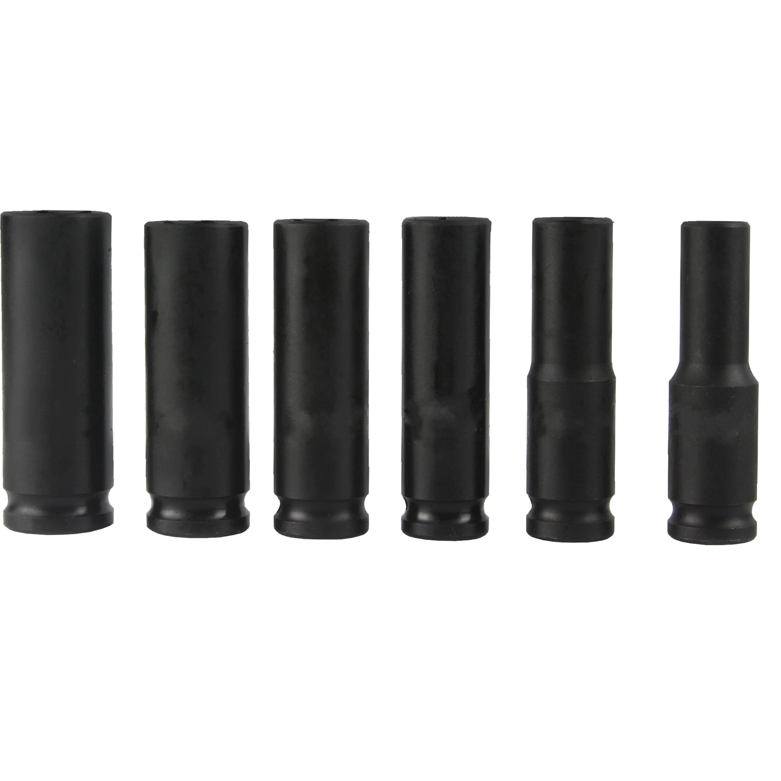 Ten zestaw nasadek udarowych długich 1/2" to pewność solidnego wykonania i najwyższej trwałości. Dzięki sześciu podstawowym rozmiarom zapewnia wszechstronność i wygodę pracy w każdym warsztacie i garażu.