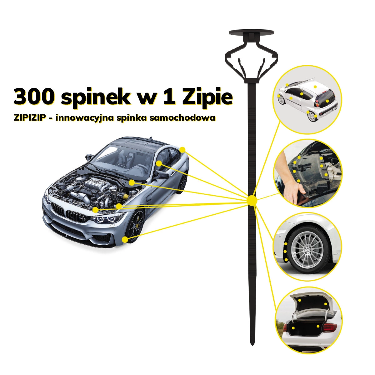 ZipiZip – innowacyjna opatentowana uniwersalna spinka samochodowa, która zastępuje aż 300 różnych typów spinek, kołków i opasek zaciskowych. Dzięki inteligentnej konstrukcji i systemowi docisku zapewnia trwałe, precyzyjne i bezluzowe połączenia w nadkolach, osłonach silnika, tapicerce, bagażniku i wielu innych elementach samochodowych. Idealna dla warsztatów, serwisów, sprzedawców części oraz kierowców ceniących jakość, prostotę i wszechstronność.