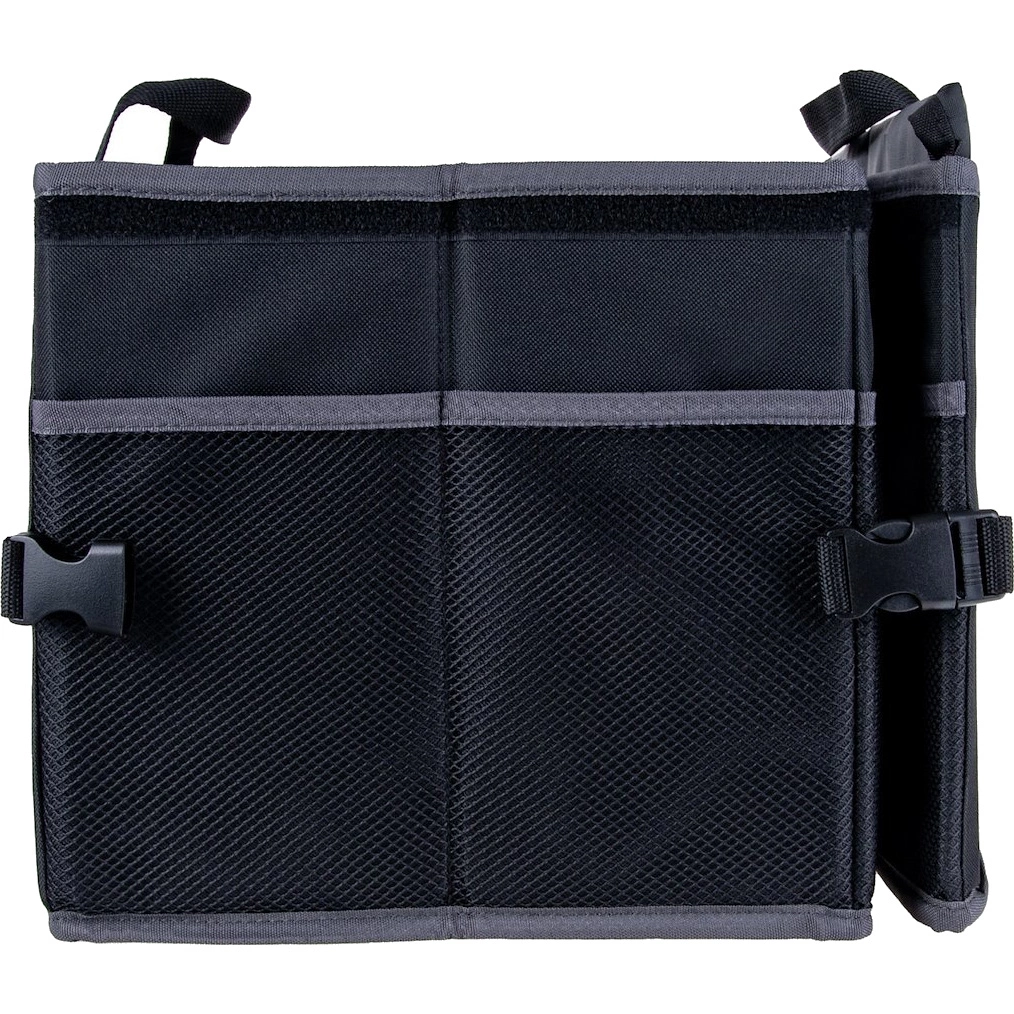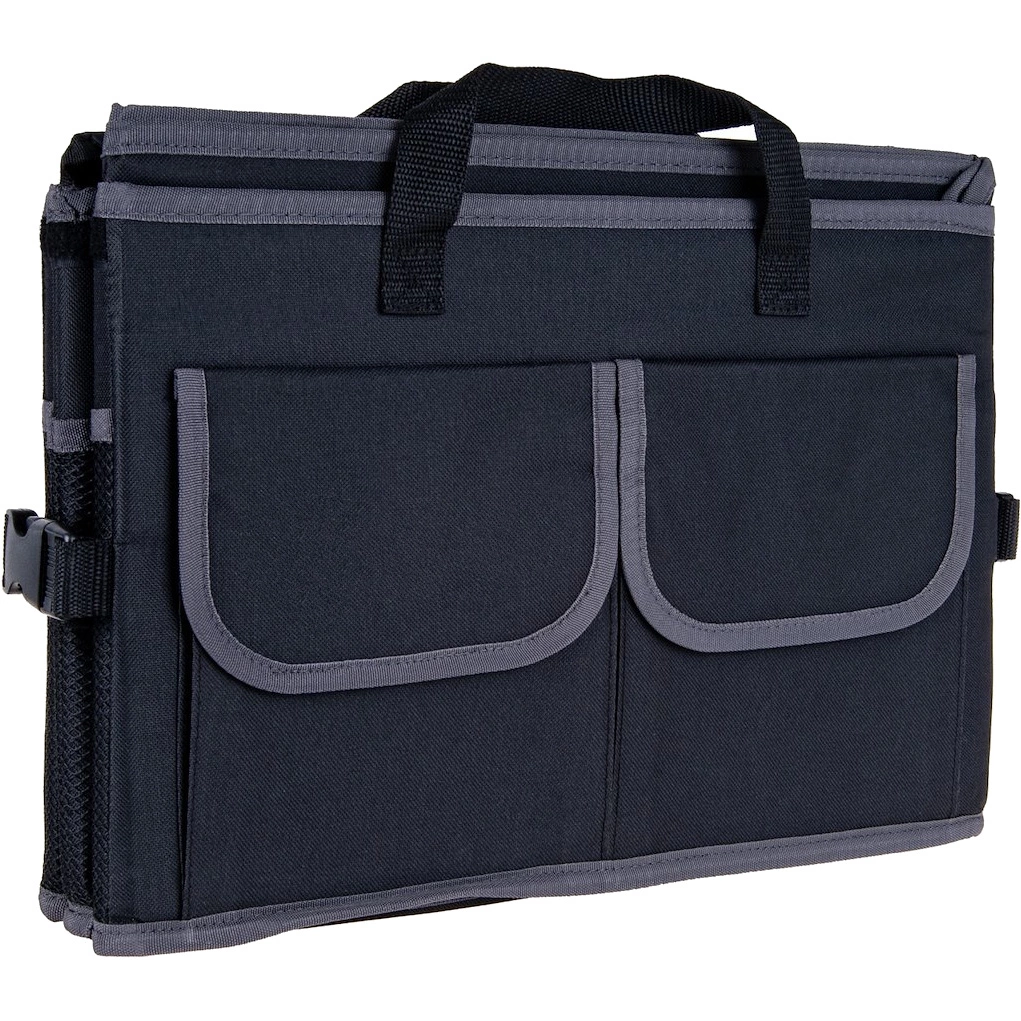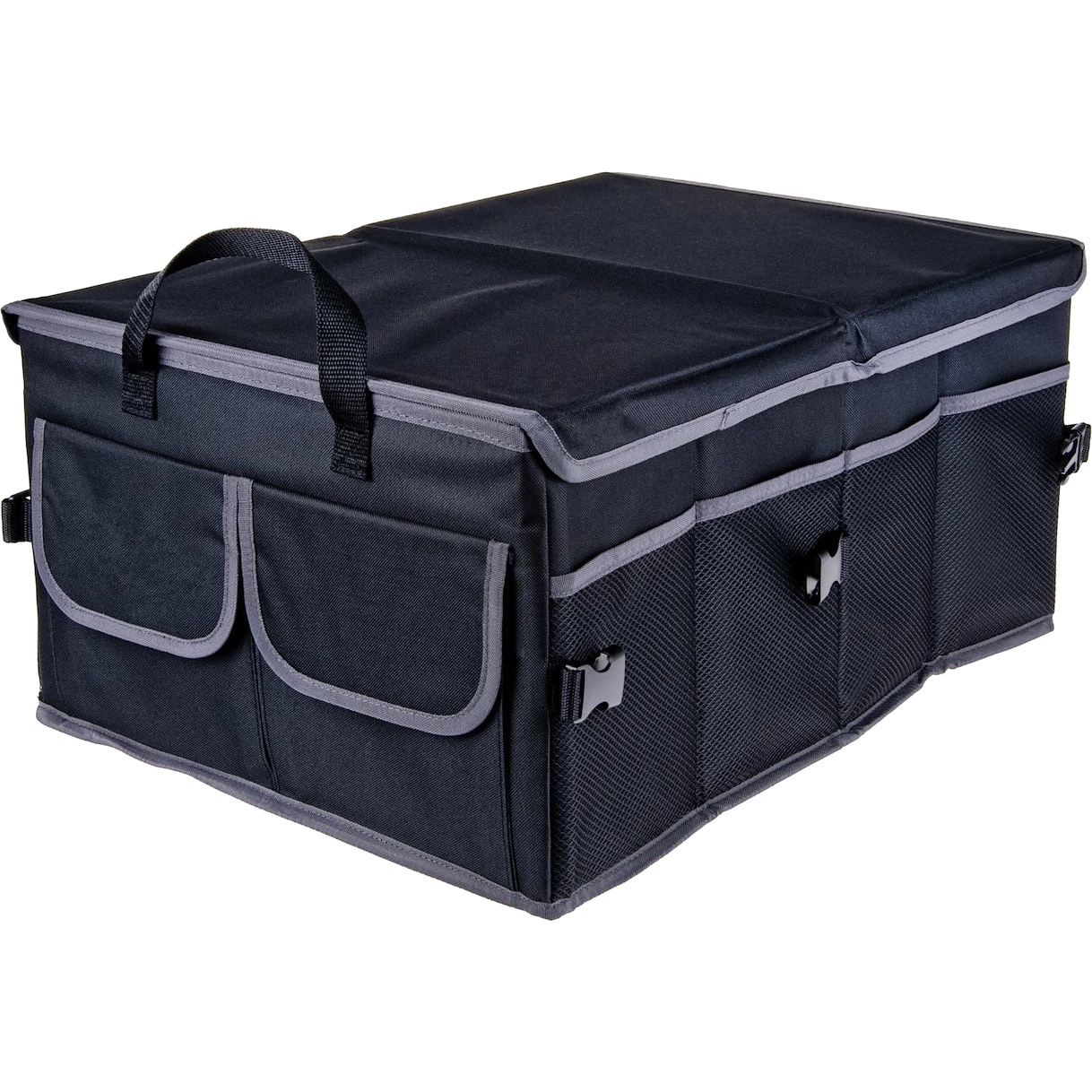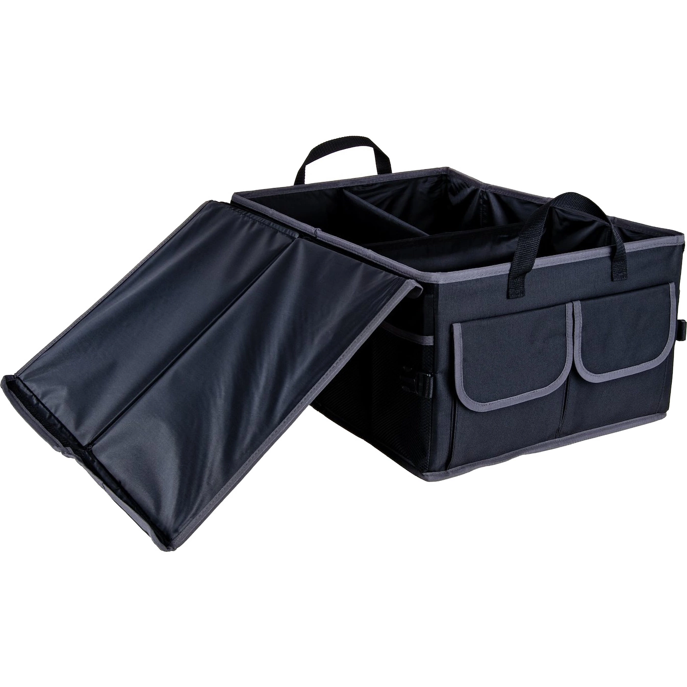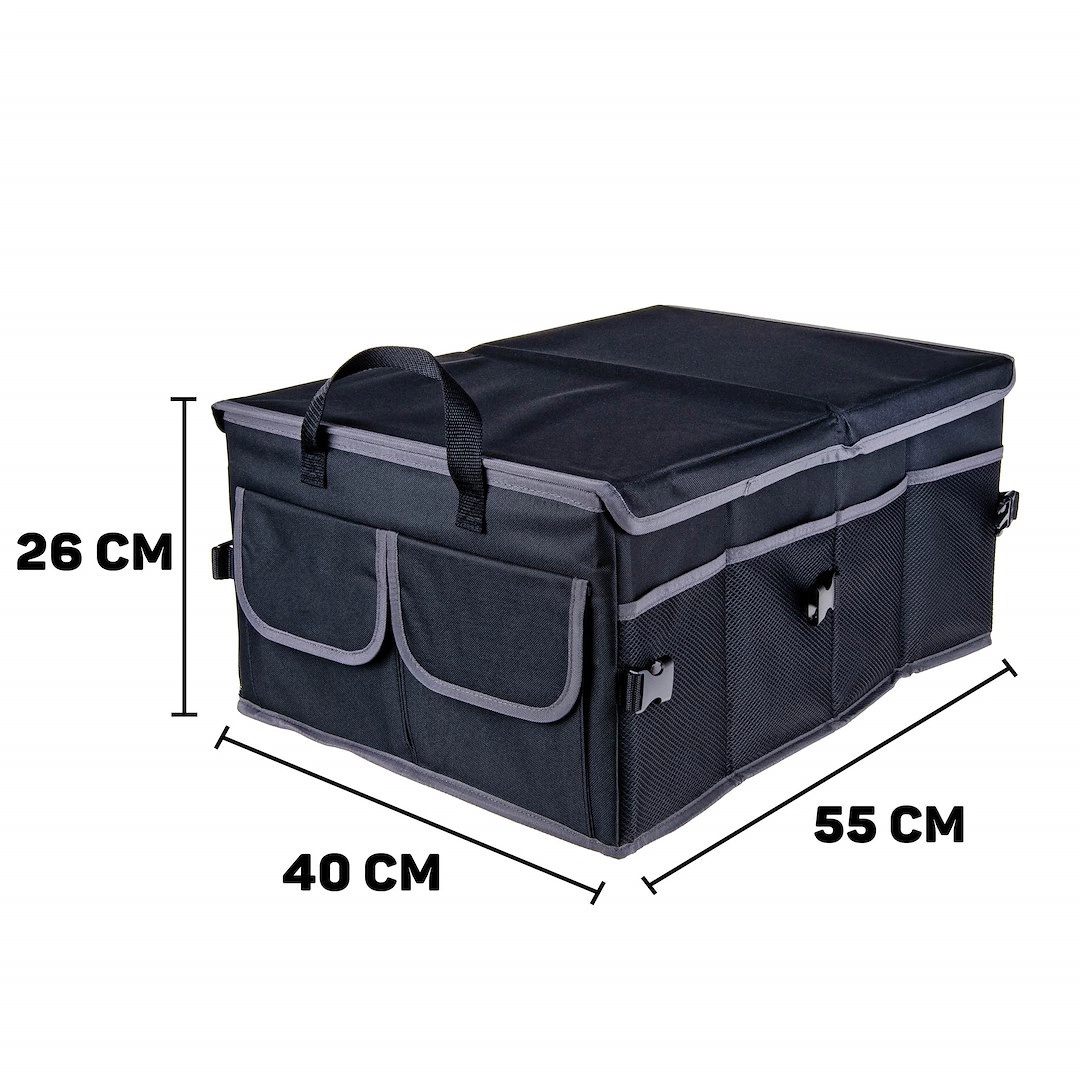 Organizer do bagażnika samochodowego – torba usztywniana z przegródkami i pokrywą to praktyczne akcesorium samochodowe, które pozwala utrzymać porządek w bagażniku. Dzięki usztywnionym ściankom, licznym przegródkom i pokrywie wszystkie akcesoria, narzędzia i zakupy są zawsze bezpieczne i na swoim miejscu. Organizer jest łatwy w transporcie, wytrzymały i prosty w czyszczeniu, a możliwość składania sprawia, że nie zajmuje dużo miejsca, gdy nie jest używany.