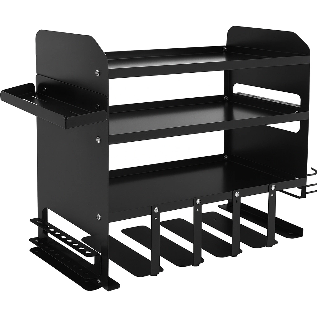 Półka wisząca na narzędzia akumulatorowe to praktyczny i solidny wieszak warsztatowy zaprojektowany do przechowywania elektronarzędzi, takich jak wiertarki, wkrętarki, szlifierki czy zakrętarki. Wyposażony w uchwyty, półki i przegrody, pozwala na wygodne i bezpieczne przechowywanie narzędzi oraz akcesoriów w jednym miejscu. Idealny do warsztatu, garażu lub pomieszczenia technicznego.