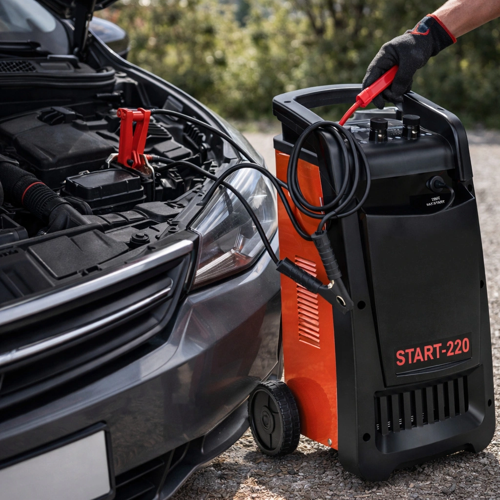 Urządzenie obsługuje szeroki zakres pojemności akumulatorów, od 20Ah do 600Ah, co czyni je uniwersalnym rozwiązaniem do samochodów osobowych, dostawczych, ciężarowych oraz maszyn rolniczych. Funkcja rozruchu o prądzie 250A zapewnia skuteczne wsparcie uruchomienia silnika nawet przy rozładowanym akumulatorze.