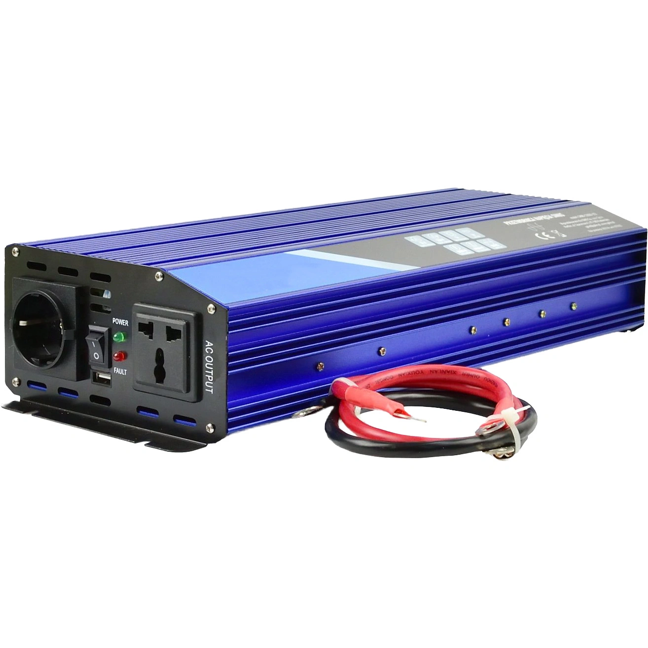 Przetwornica napięcia 12V / 230V 2000 W / 4000 W – czysty sinus to wydajne i niezawodne urządzenie przeznaczone do zamiany prądu stałego 12 V z akumulatora na prąd przemienny 230 V, identyczny jak w sieci energetycznej. Idealnie sprawdzi się w samochodach osobowych, kamperach, przyczepach kempingowych oraz w zastosowaniach mobilnych.