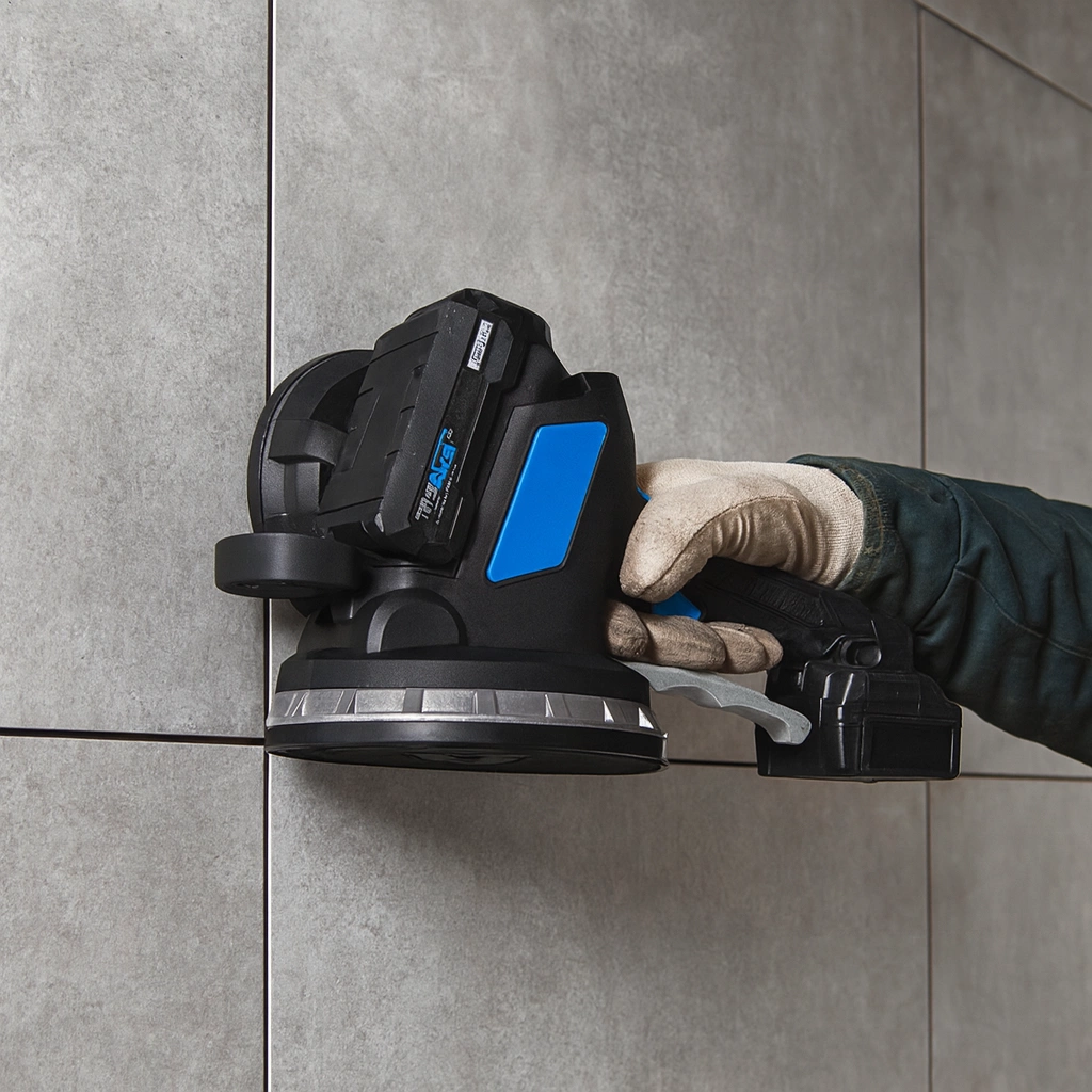 Przyssawka wibrująca akumulatorowa do układania płytek, zestaw z ładowarką + 2 x akumulator 2000mAh 21V to profesjonalne narzędzie dla glazurników, które znacząco ułatwia przenoszenie i montaż płytek ceramicznych, gresowych oraz kamiennych. Dzięki funkcji wibracji urządzenie zapewnia równomierne rozprowadzenie kleju i skuteczne usunięcie pęcherzyków powietrza, co zapobiega powstawaniu pustych przestrzeni i gwarantuje trwałe zespolenie płytki z podłożem. Regulacja częstotliwości wibracji pozwala idealnie dostosować pracę do różnych warunków i rodzaju materiałów.