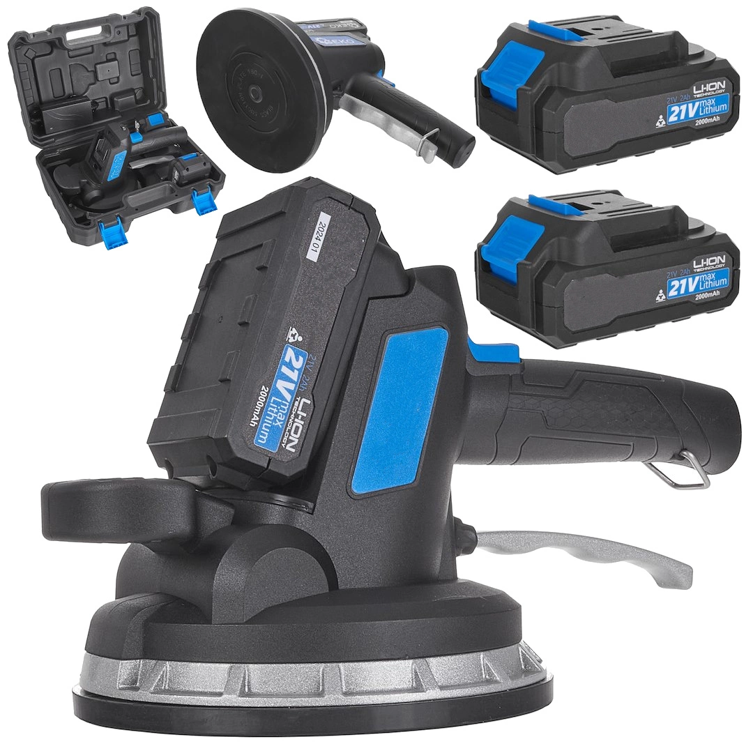 Przyssawka wibrująca akumulatorowa do układania płytek, zestaw z ładowarką + 2 x akumulator 2000mAh 21V