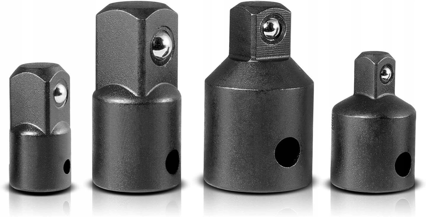 Zestaw specjalistycznych redukcji, adapterów przeznaczonych do pracy z kluczem udarowym. Redukcje cechuje trwałość oraz niezawodność. Elementy zostały wykonane ze stali narzędziowej CR-MO, która gwarantuje ich wytrzymałość i długą żywotność. Znakomicie się nadają do prac pod obciążeniem zarówno w domowym warsztacie jak i w profesjonalnym zakładzie. Ponadto posiadają kulkę blokującą.