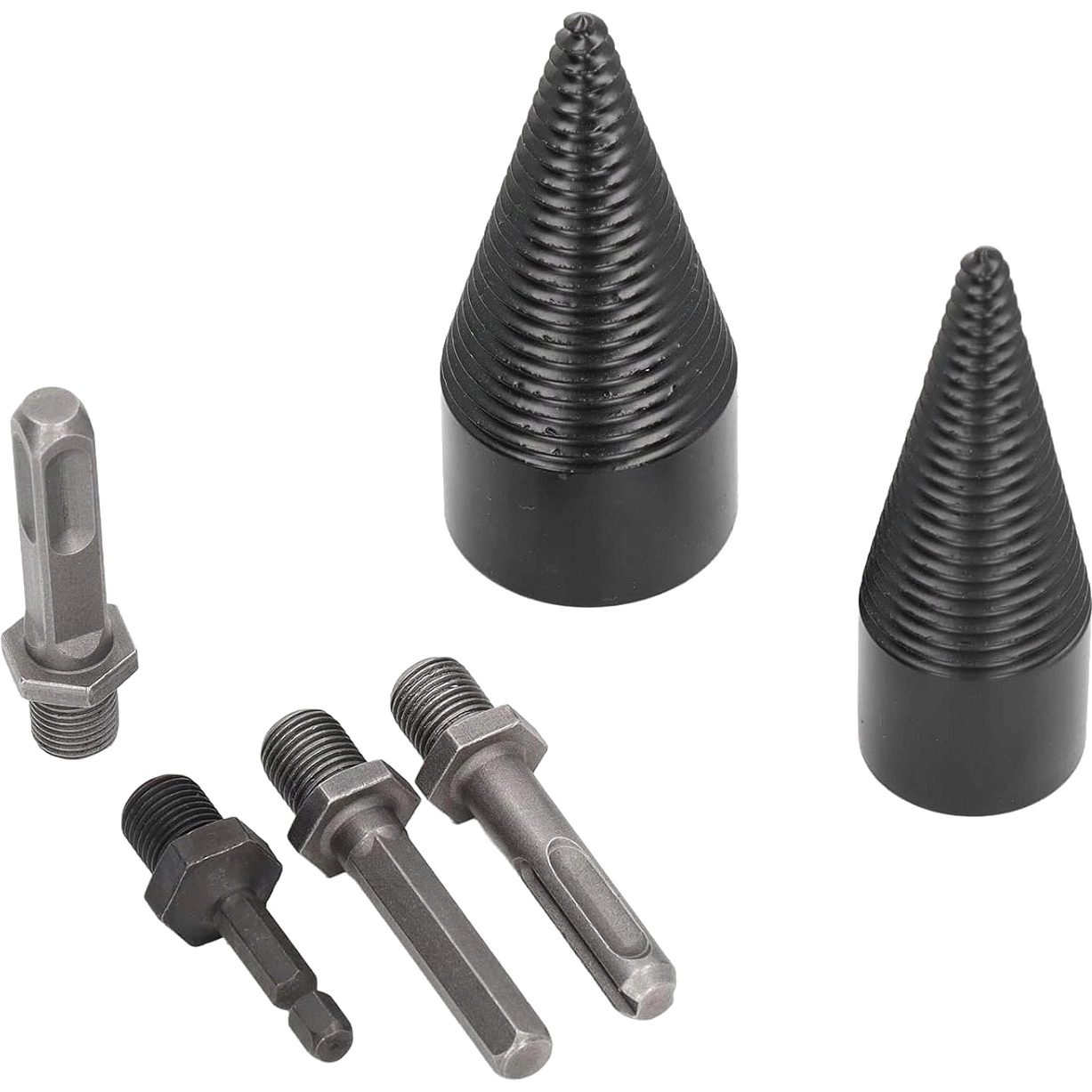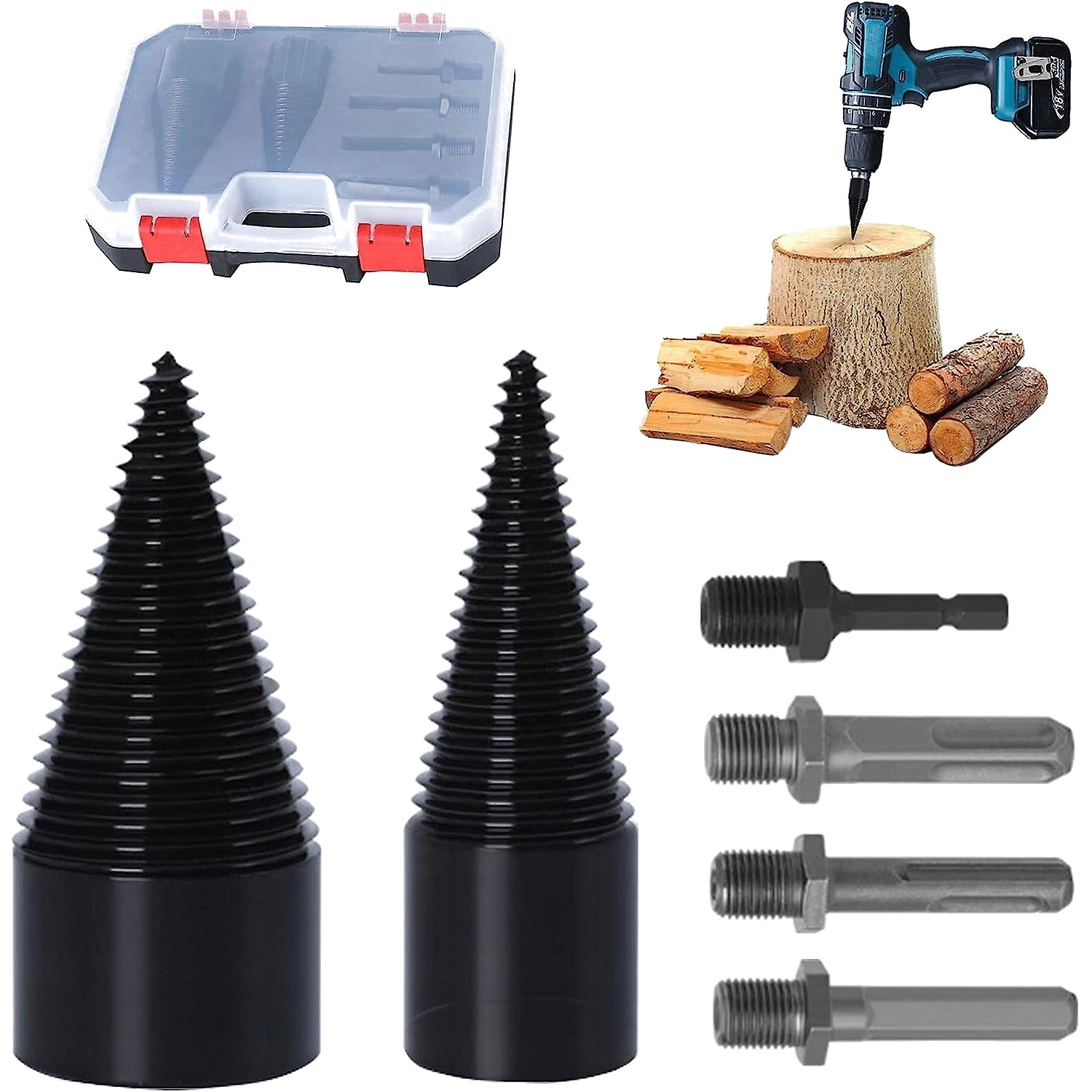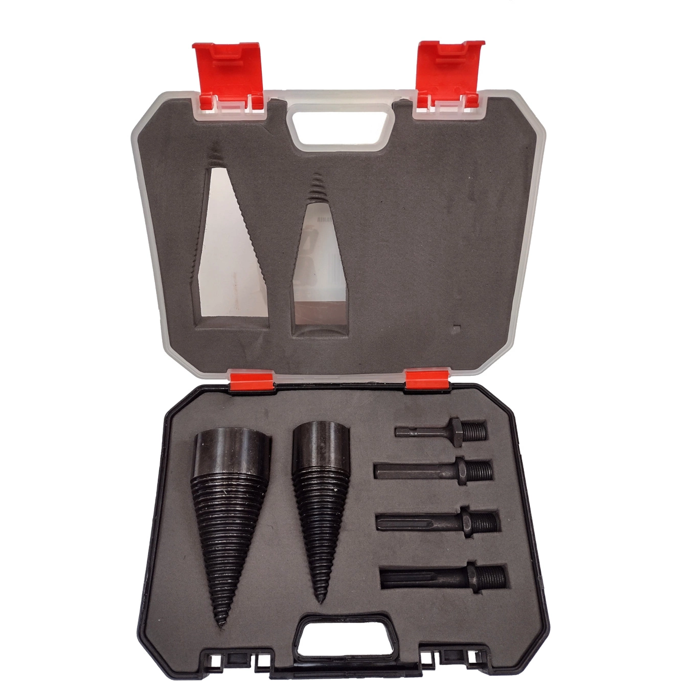 Rozwiertak świder do łupania drewna stożek 32mm + 42mm + 4 adaptery zestaw w walizce, 6el.