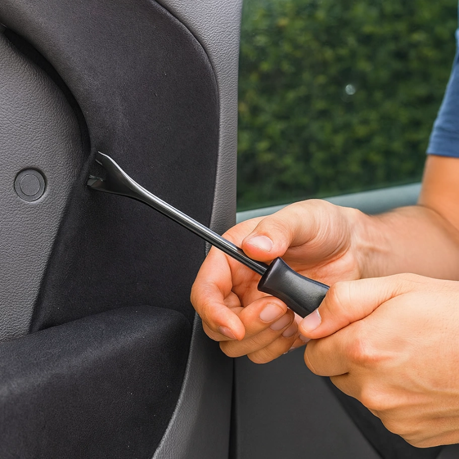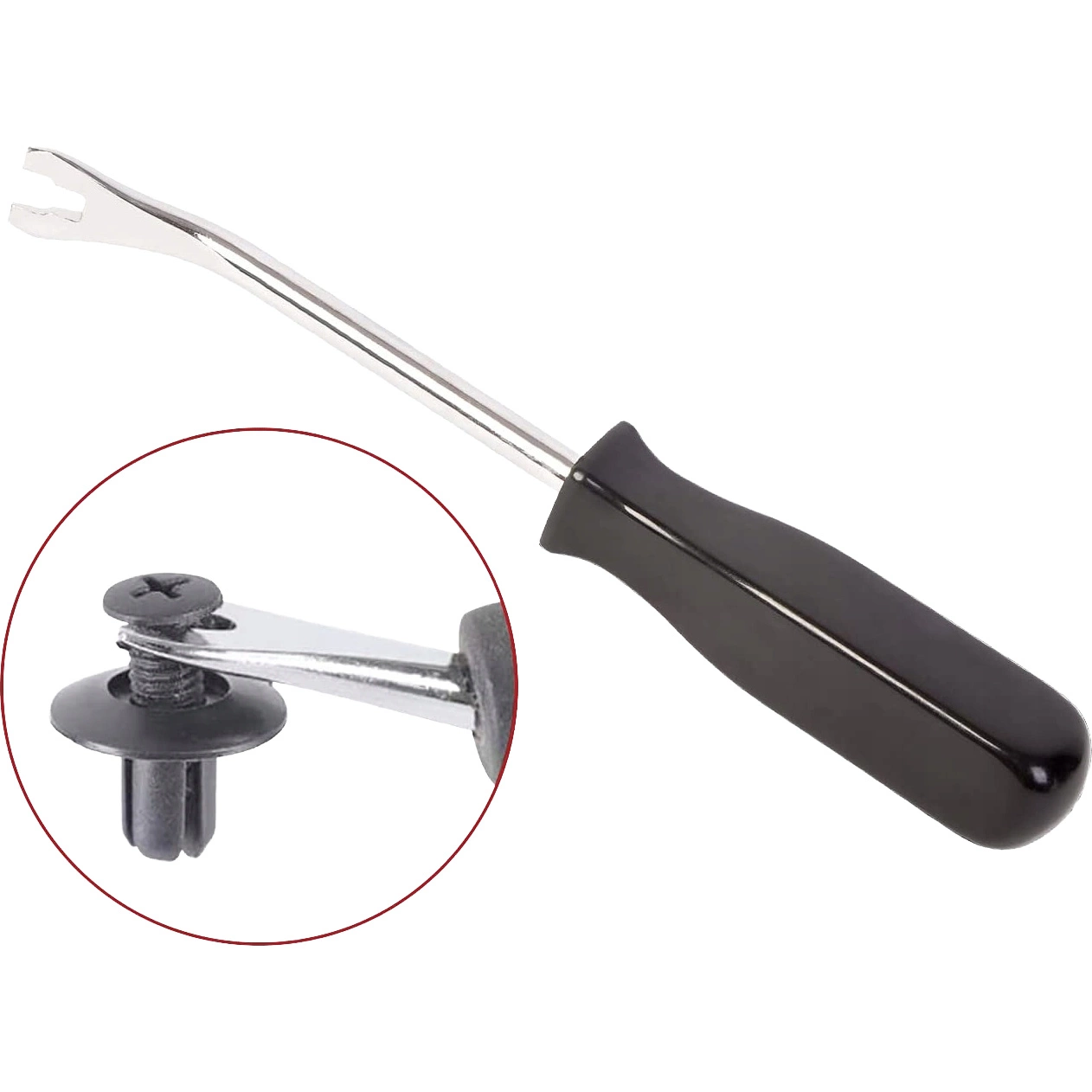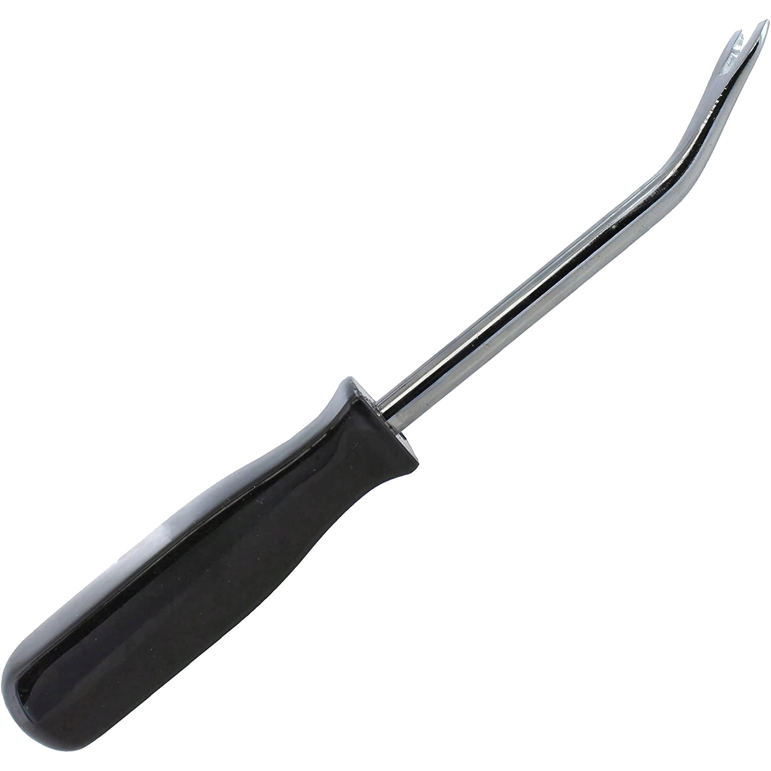 Ściągacz do spinek i tapicerki 250mm to praktyczne narzędzie warsztatowe przeznaczone do bezpiecznego demontażu spinek tapicerskich stosowanych w mocowaniach elementów wnętrza i karoserii samochodu. Dzięki odpowiednio wyprofilowanej konstrukcji oraz długiemu ramieniu 250 mm umożliwia łatwe usuwanie nawet mocno osadzonych spinek, także w trudno dostępnych miejscach.