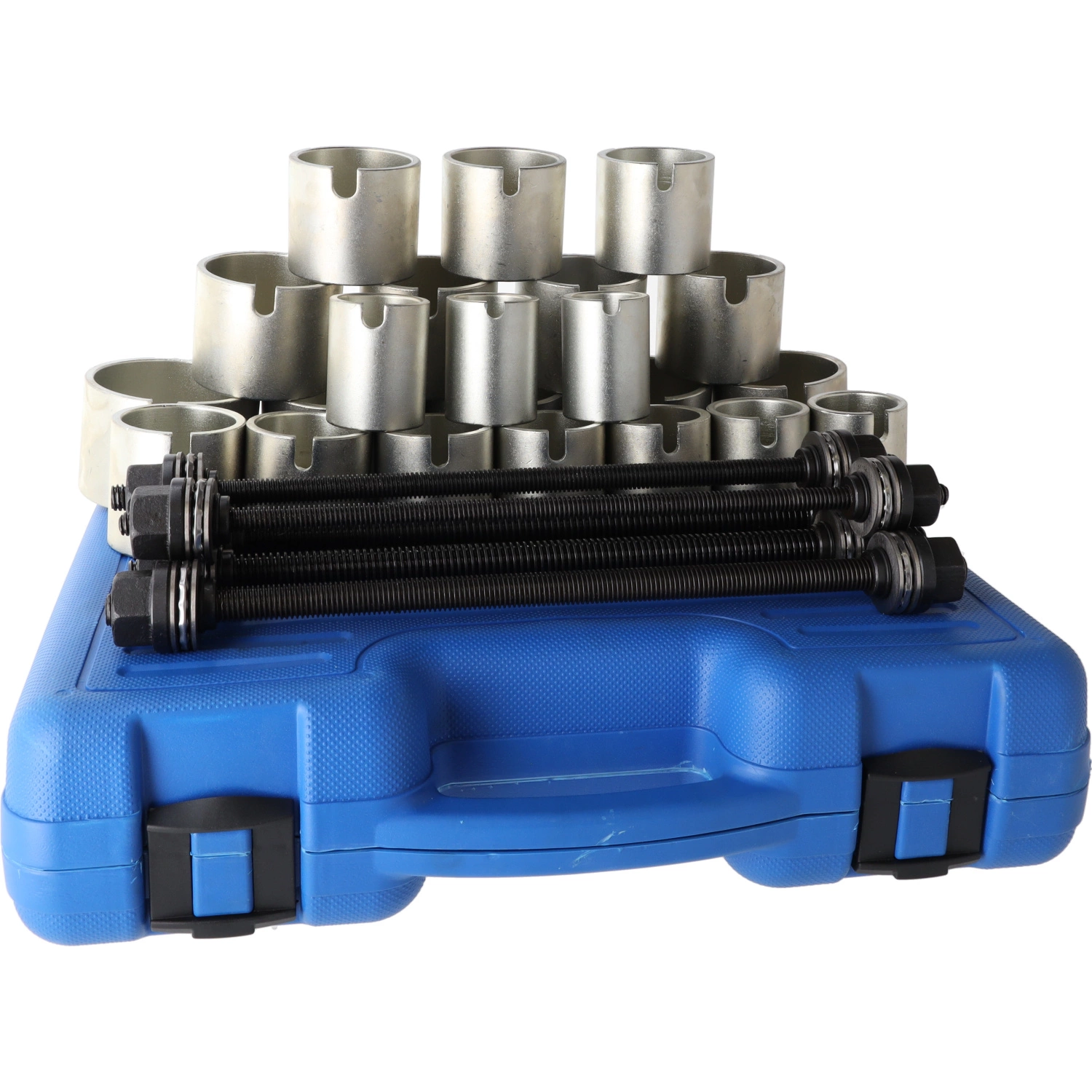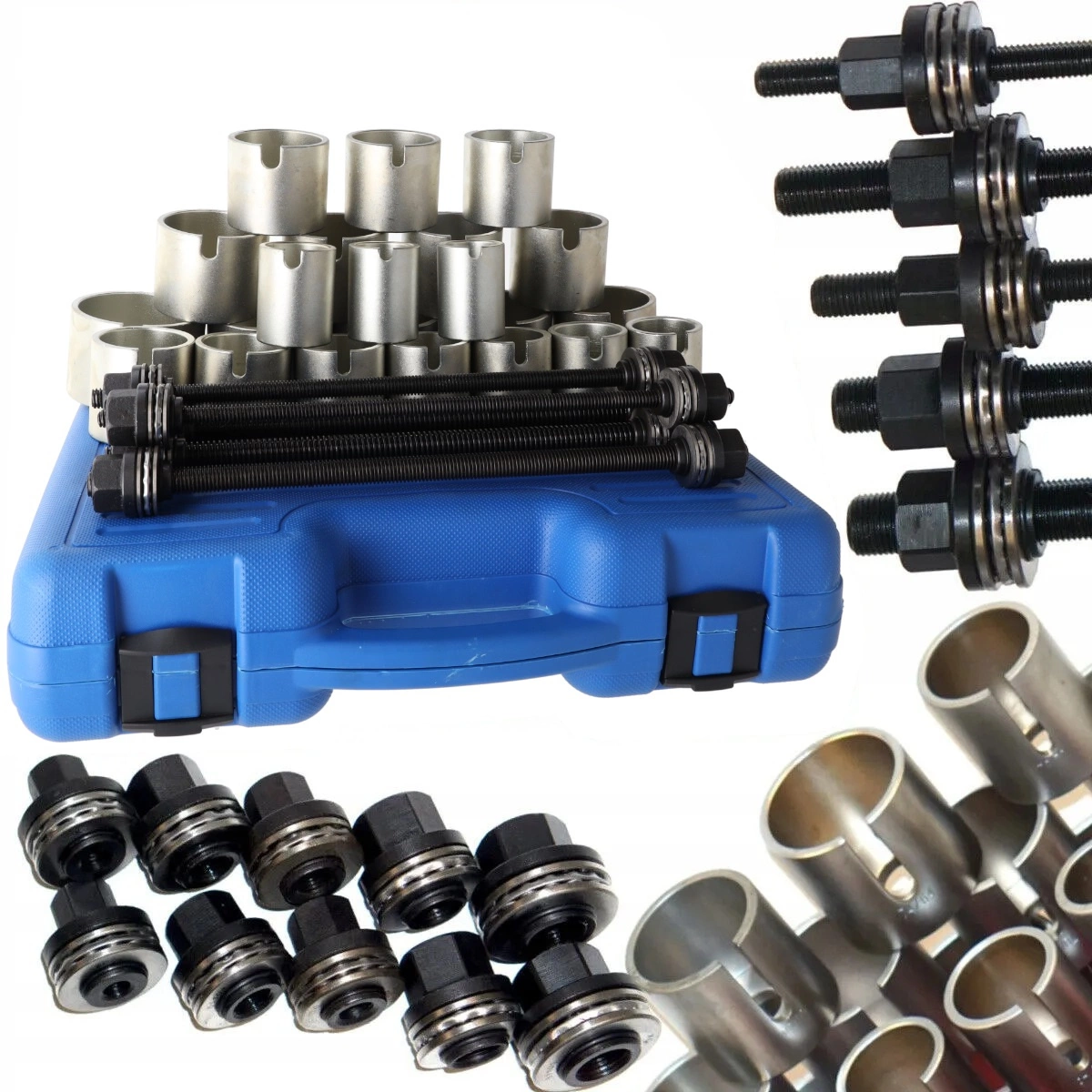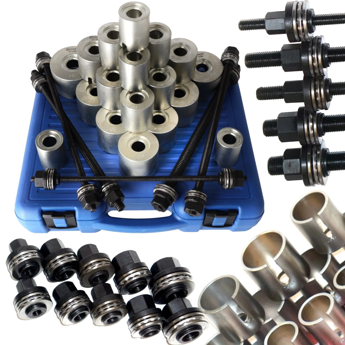 Zestaw przeznaczony do demontażu i montażu tulei oraz łożysk w elementach zawieszenia, wahaczach oraz innych częściach samochodowych. Niezbędny w warsztatach mechanicznych, serwisach samochodowych, a także przy zaawansowanych naprawach garażowych.