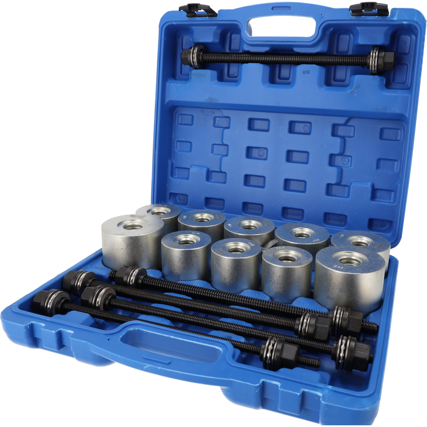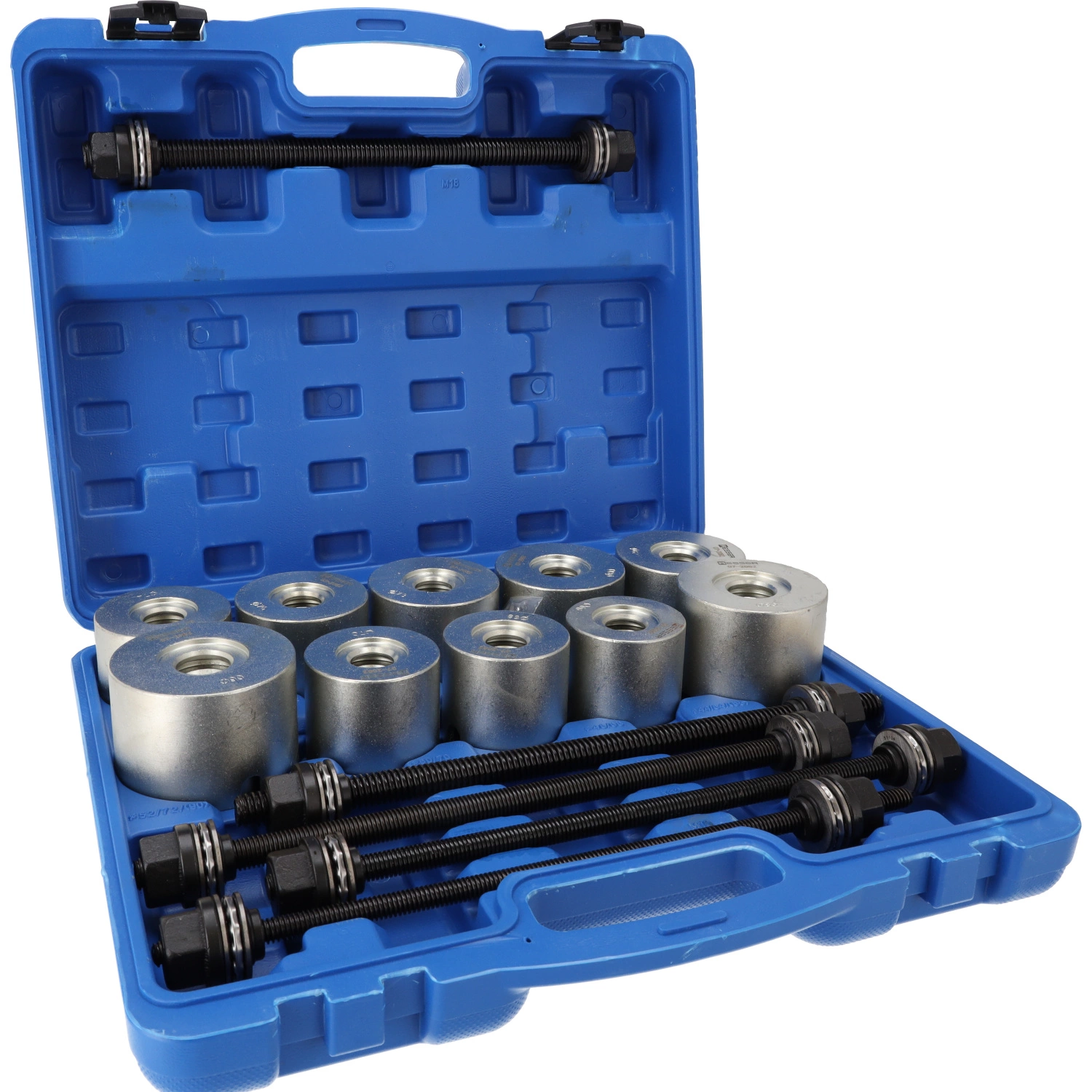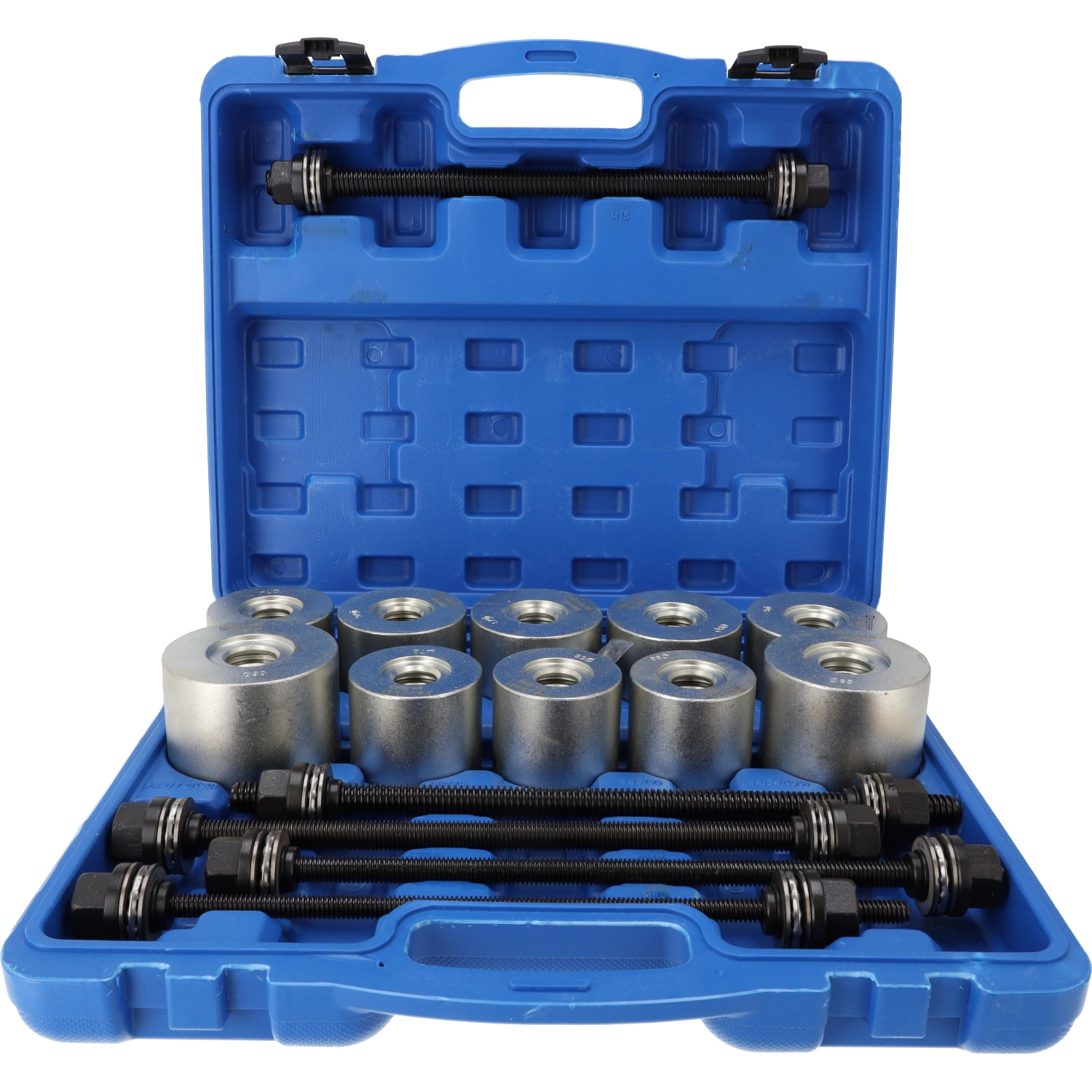 Zestaw przeznaczony do demontażu i montażu tulei oraz łożysk w elementach zawieszenia, wahaczach oraz innych częściach samochodowych. Niezbędny w warsztatach mechanicznych, serwisach samochodowych, a także przy zaawansowanych naprawach garażowych.