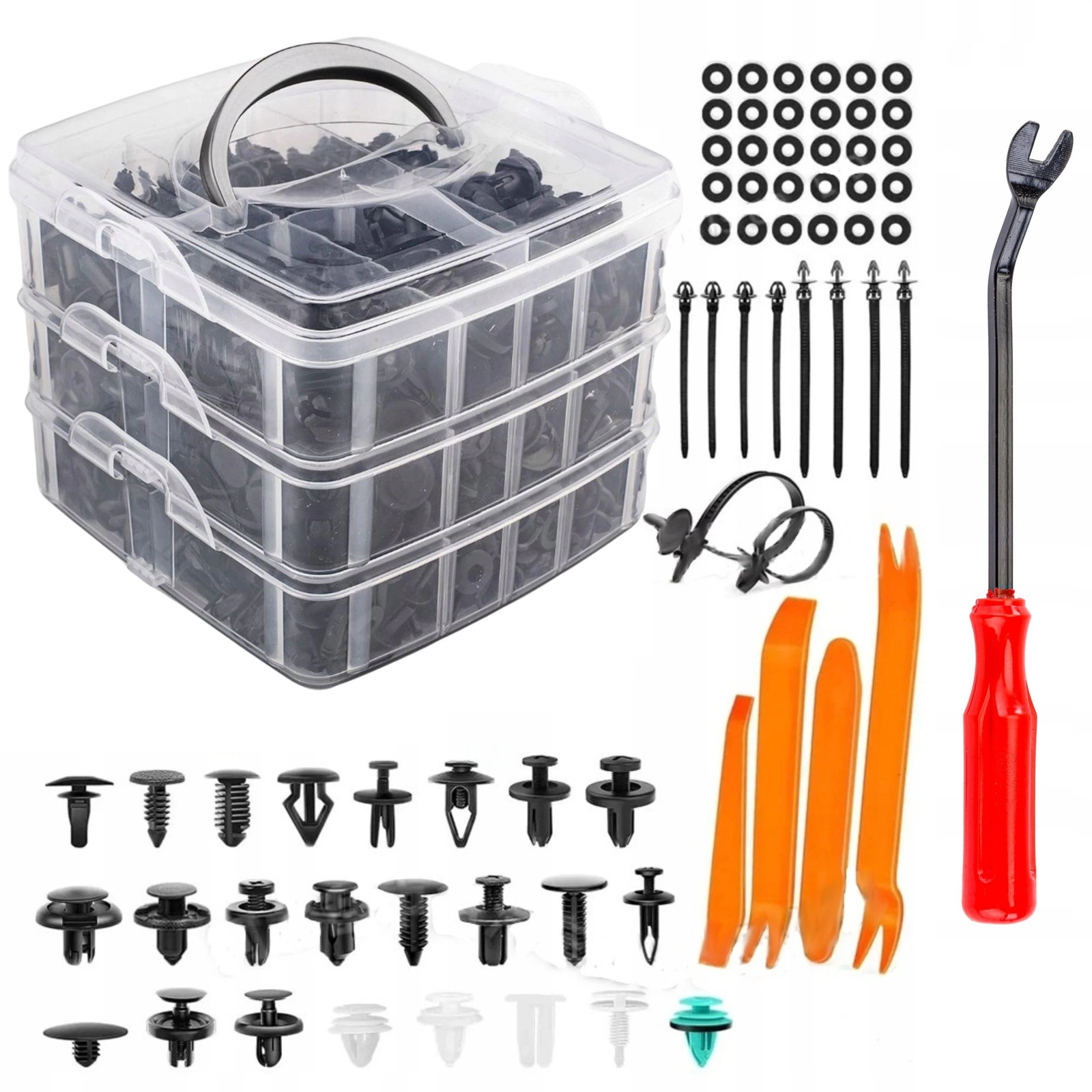 Spinki samochodowe 845 elementów to praktyczny i uniwersalny zestaw przeznaczony do mocowania elementów karoserii, tapicerki oraz osłon w różnych modelach samochodów. Spinki wykonane zostały z trwałego tworzywa odpornego na pęknięcia i zużycie, a całość zapakowana jest w poręczny pojemnik z rączką, co ułatwia organizację i transport.
