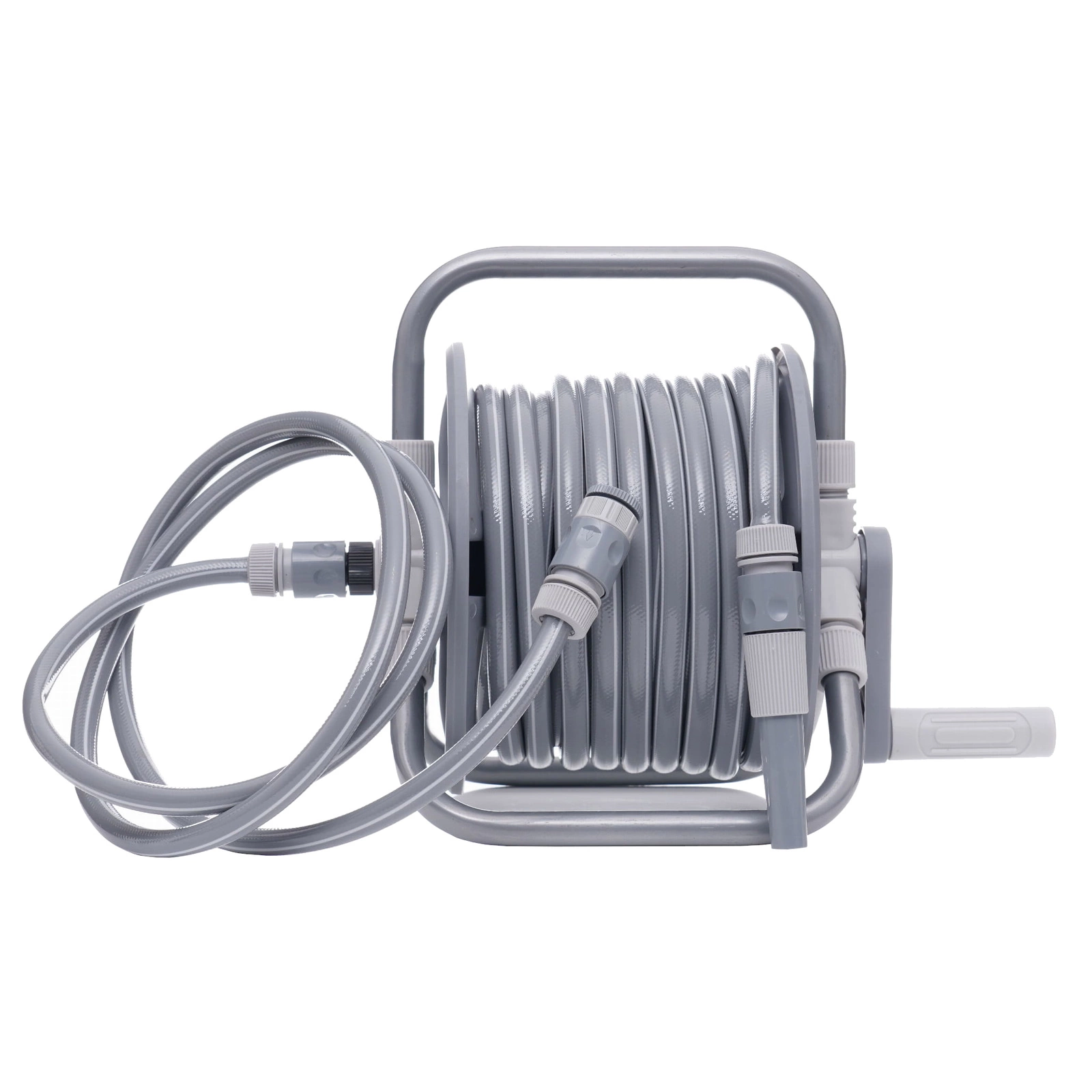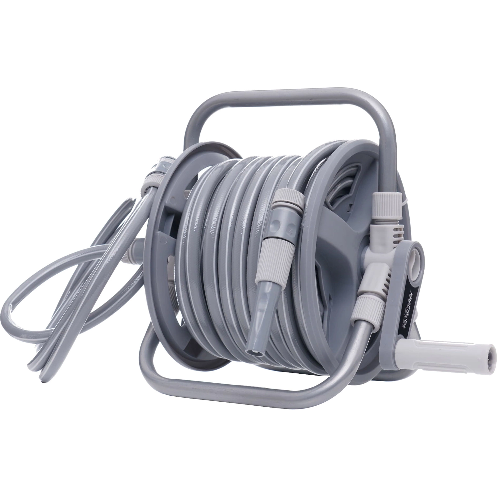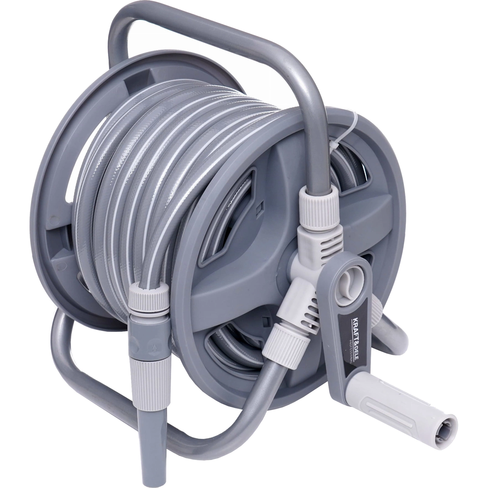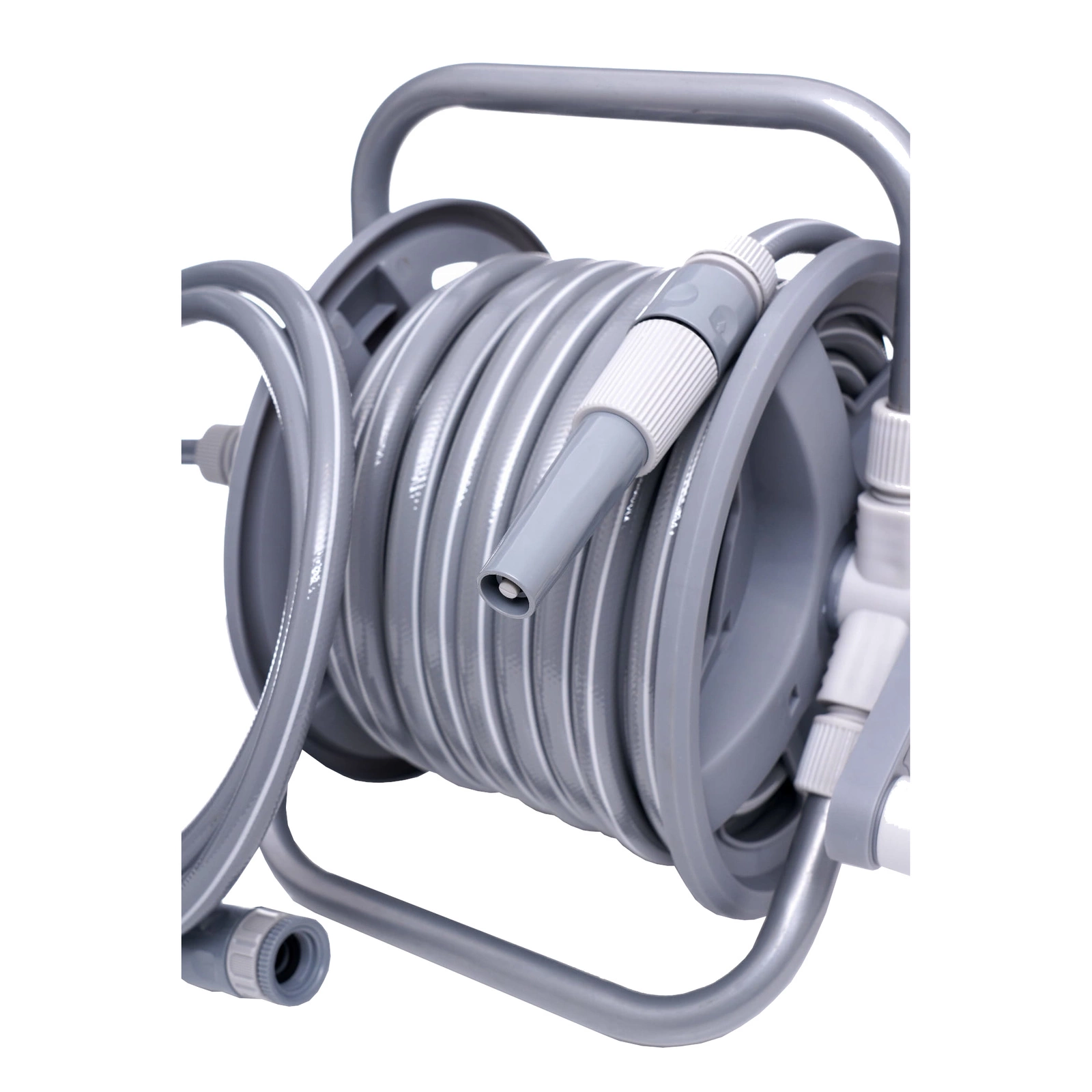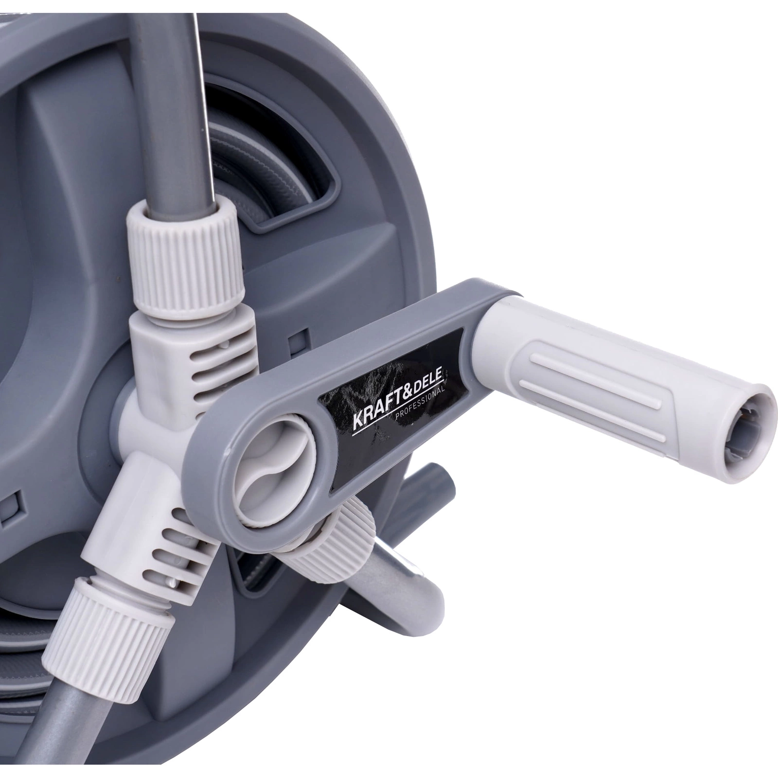 Stojak z wężem ogrodowym KD2079 to praktyczne rozwiązanie do podlewania ogrodu, idealne dla osób ceniących łatwość i wygodę podlewania. Wysokiej jakości aluminium zapewnia odporność na korozję i niską wagę. Wąż ogrodowy 1/2" o długości 20m wykonano z trwałego PCV odpornego na promieniowanie UV.