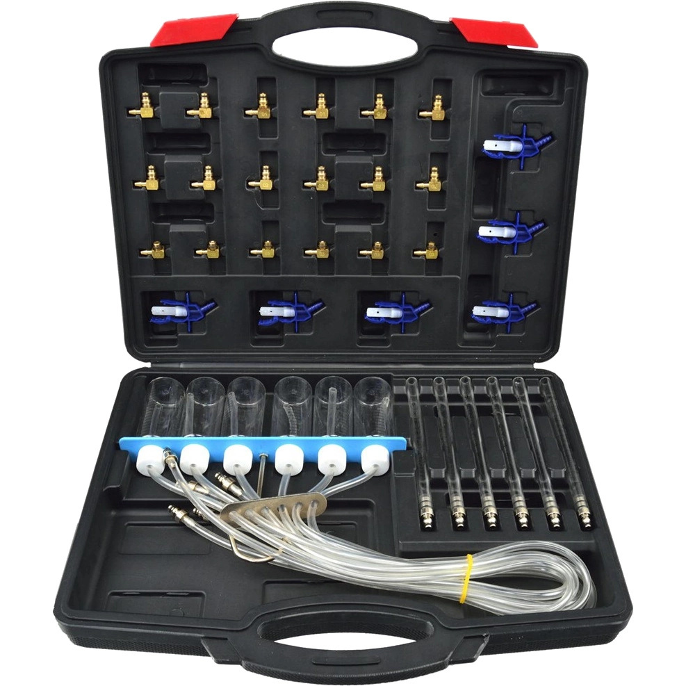 Tester do wtryskiwaczy Common Rail to zestaw do pomiaru przepływu paliwa na przelewach w wtryskiwaczach Common Rail. Umożliwia diagnostykę do 6 wtryskiwaczy jednocześnie. Przeznaczony do użytku w warsztatach samochodowych oraz serwisach diesla.