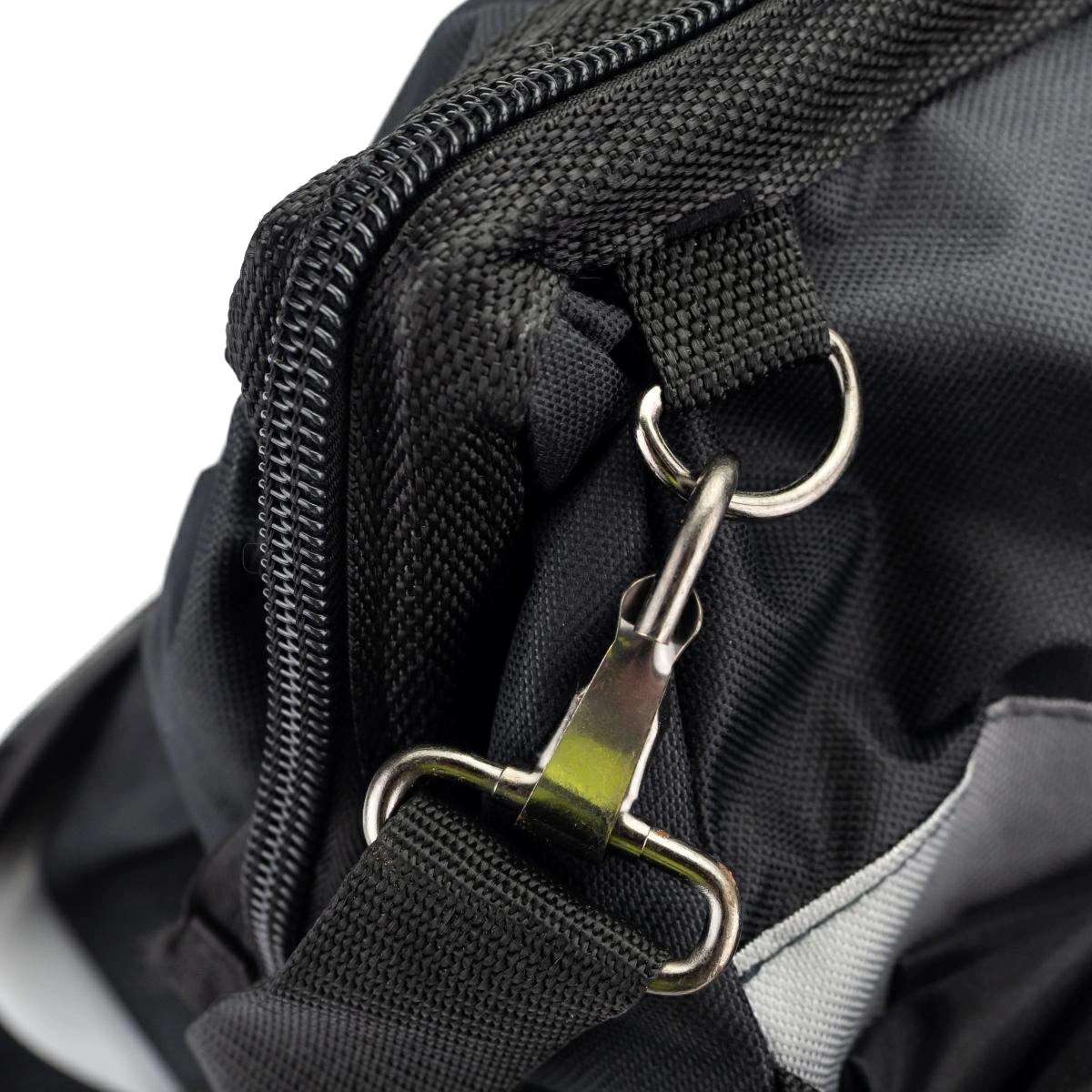 Torba narzędziowa 20" JCB to profesjonalne rozwiązanie do przechowywania i transportu narzędzi. Wykonana z wytrzymałego materiału odpornego na ścieranie, z wodoodpornym dnem z polipropylenu, idealnie sprawdzi się zarówno w warsztacie, jak i podczas pracy w terenie.