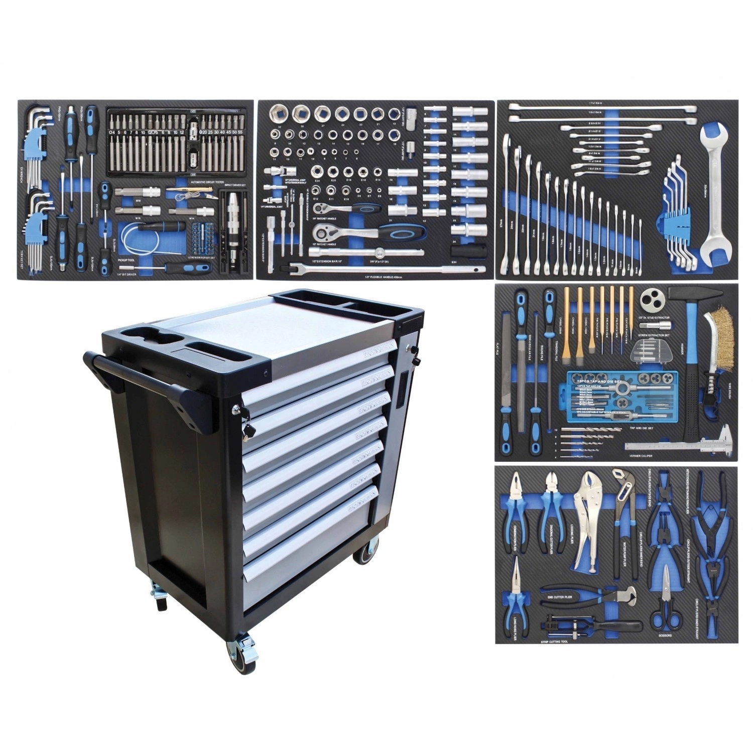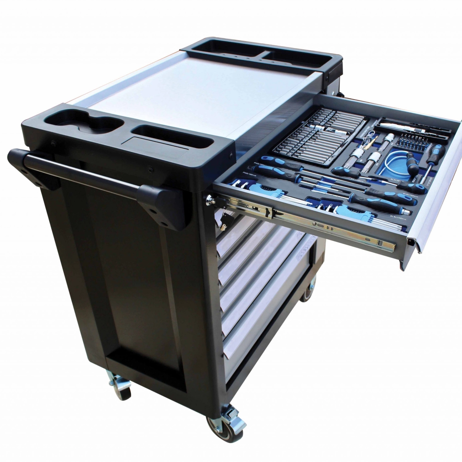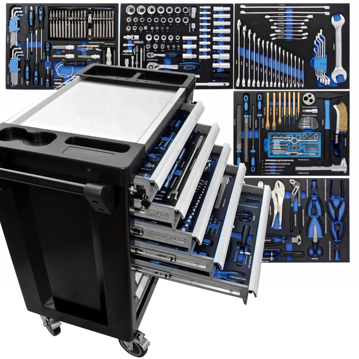 Wózek narzędziowy z wyposażeniem, 274 el. to niezawodne rozwiązanie dla warsztatów, serwisów i majsterkowiczów. Ten funkcjonalny wózek warsztatowy łączy w sobie wygodę, mobilność i szeroki zakres narzędzi, które ułatwią każdą pracę. Dzięki solidnej konstrukcji, 7 praktycznym szufladom (5 z wyposażeniem 2 puste) oraz bogatemu wyposażeniu, jest to idealna szafka narzędziowa dla każdego mechanika, ślusarza i majsterkowicza.