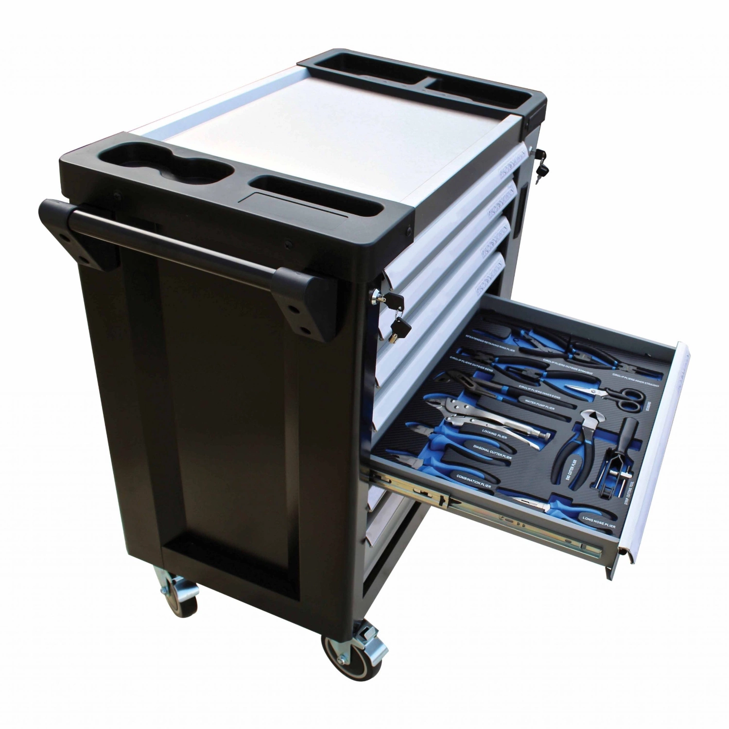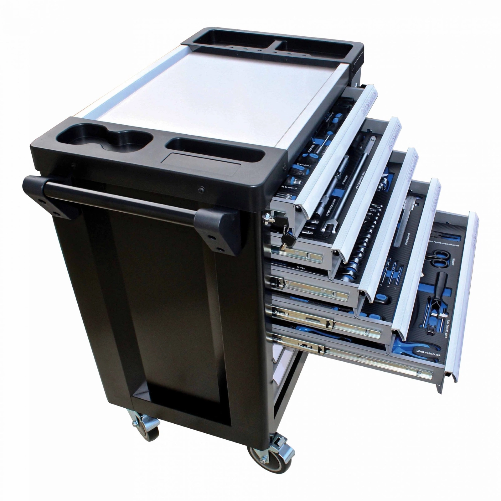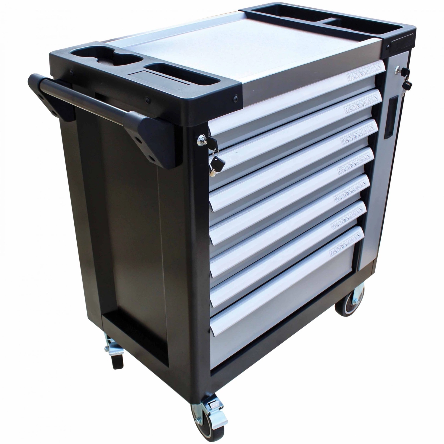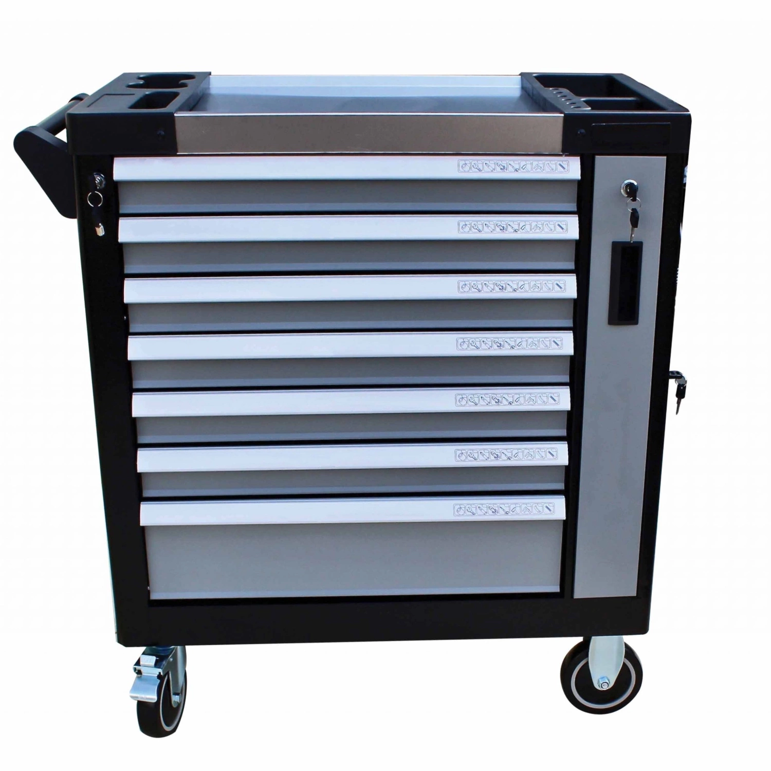 Wózek narzędziowy z wyposażeniem, 274 el. to niezawodne rozwiązanie dla warsztatów, serwisów i majsterkowiczów. Ten funkcjonalny wózek warsztatowy łączy w sobie wygodę, mobilność i szeroki zakres narzędzi, które ułatwią każdą pracę. Dzięki solidnej konstrukcji, 7 praktycznym szufladom (5 z wyposażeniem 2 puste) oraz bogatemu wyposażeniu, jest to idealna szafka narzędziowa dla każdego mechanika, ślusarza i majsterkowicza.
