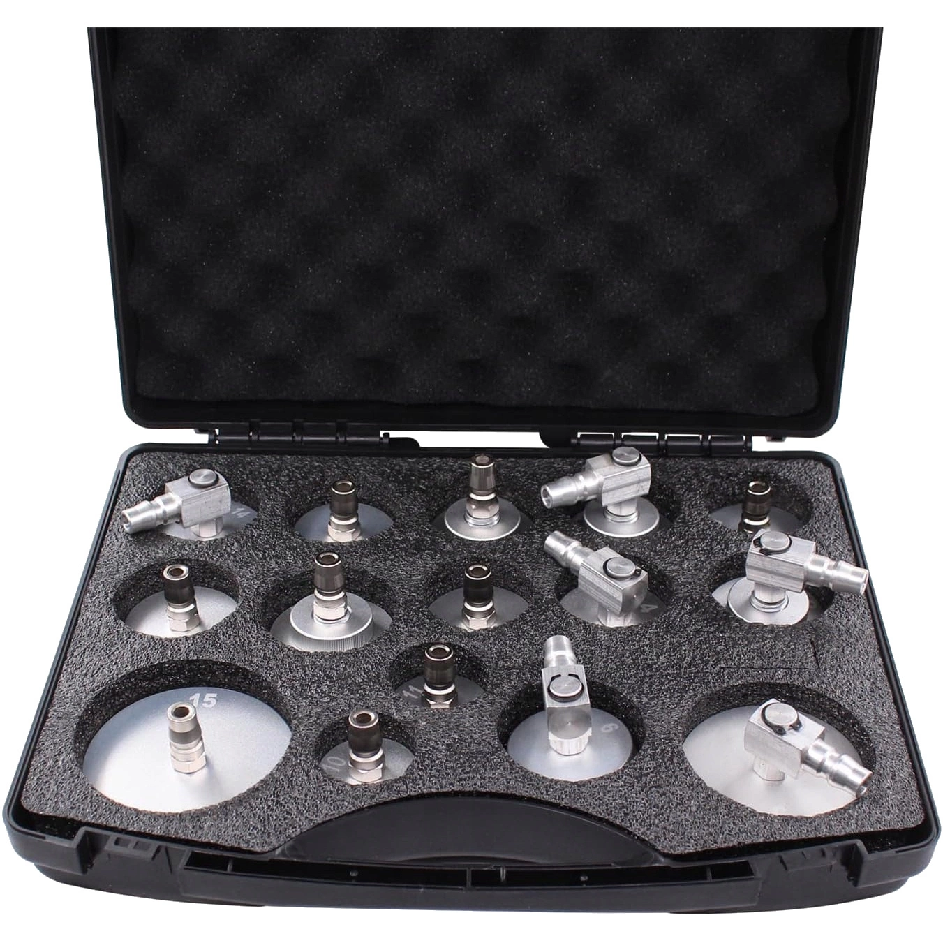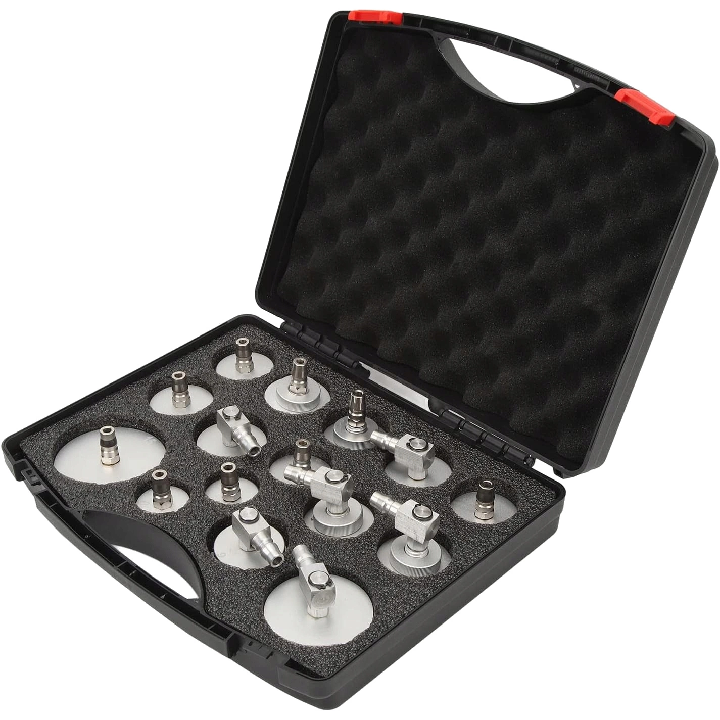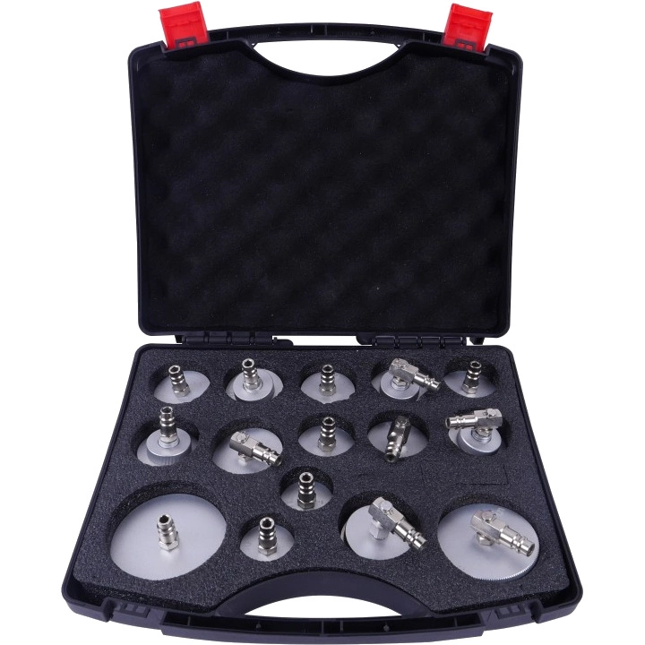 Zestaw adapterów do wymiany płynu hamulcowego 15 szt. (MGS4022) to kompletny zestaw profesjonalnych korków aluminiowych z uszczelkami, przeznaczony do urządzeń do wymiany płynu hamulcowego. Każdy adapter wykonany jest z trwałego aluminium, odpornego na działanie płynów hamulcowych i korozję. Dzięki uniwersalnym złączkom zestaw pasuje do większości urządzeń serwisowych dostępnych na rynku.
