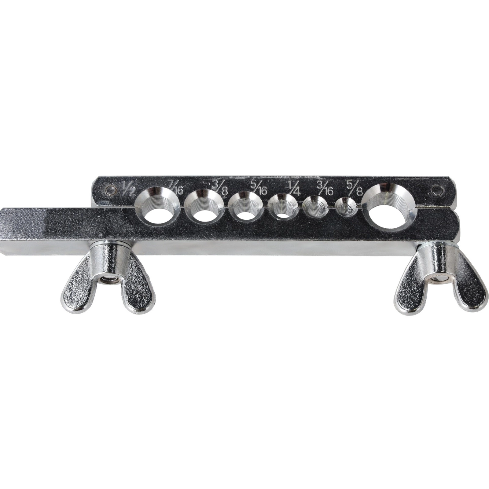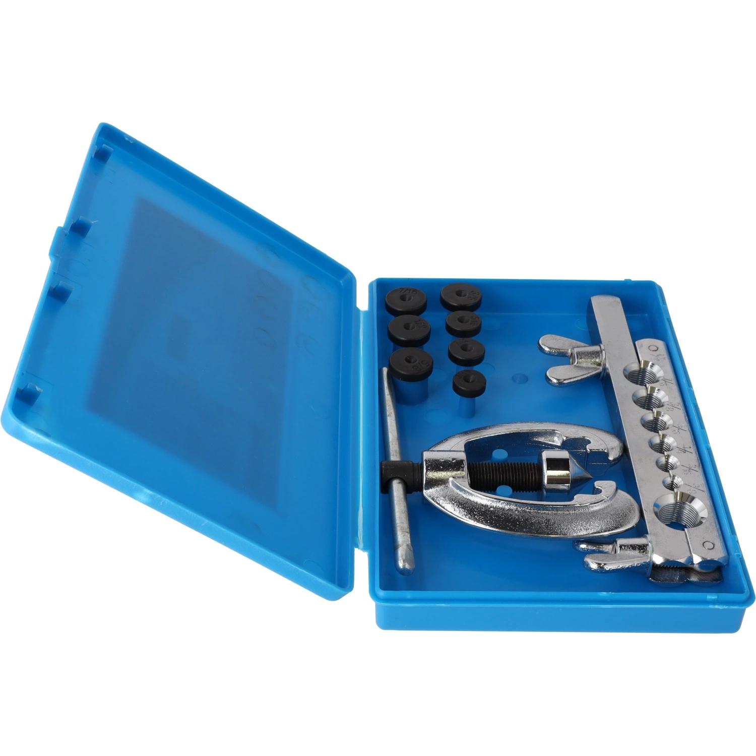 Zestaw do zarabiania przewodów hamulcowych z adapterami, 9 el. to praktyczne narzędzie warsztatowe przeznaczone do zarabiania końcówek przewodów hamulcowych wykonanych z miedzi lub cienkościennych rurek aluminiowych. Umożliwia szybkie i precyzyjne formowanie zakończeń przewodów hamulcowych stosowanych w pojazdach osobowych i dostawczych. Idealny do użytku w warsztatach samochodowych, serwisach oraz przy naprawach domowych.