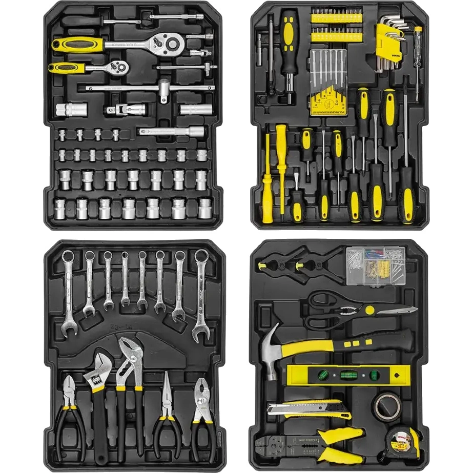 Zestaw zawiera komplet narzędzi 1/4" i 1/2", obejmujący 246 elementów – w tym grzechotki, nasadki, klucze, śrubokręty, szczypce i akcesoria. Wykonane z stali chromowo-wanadowej (Cr-V) narzędzia cechują się wyjątkową odpornością na ścieranie, korozję i duże obciążenia mechaniczne. Każdy element ma swoje miejsce w organizerze, co ułatwia zachowanie porządku i szybki dostęp do potrzebnego narzędzia.
